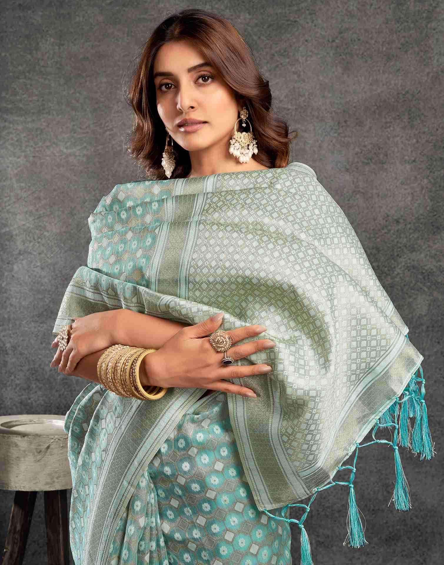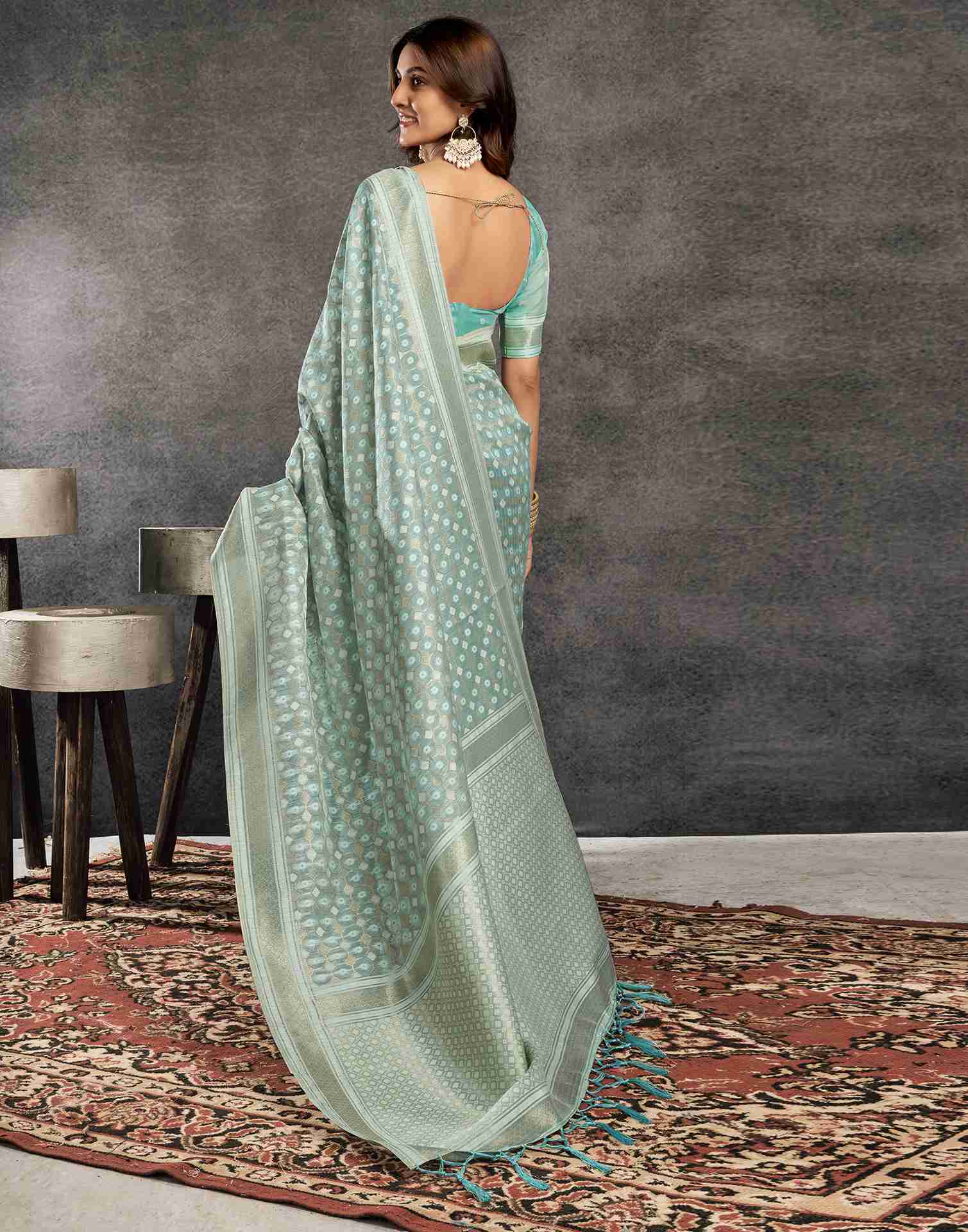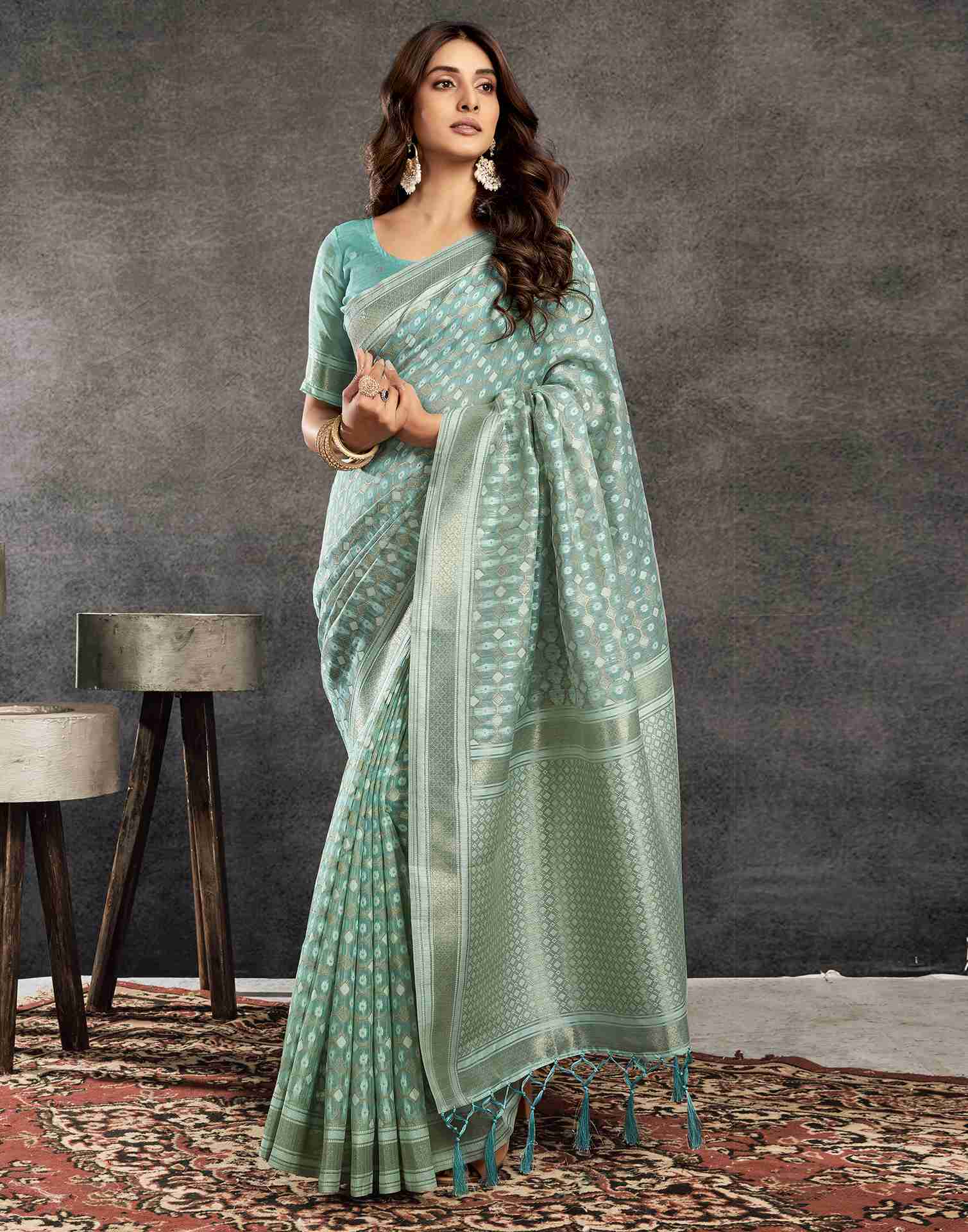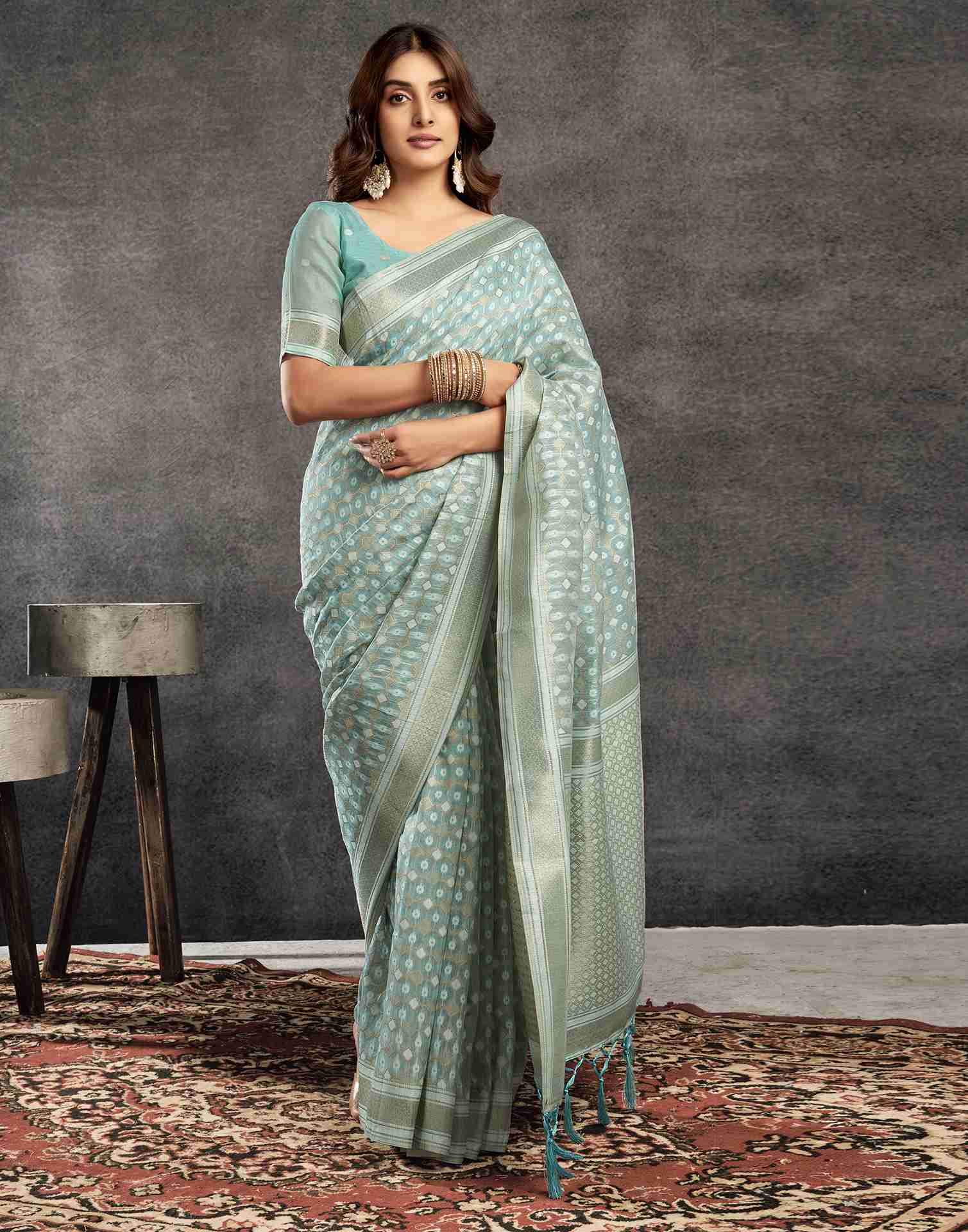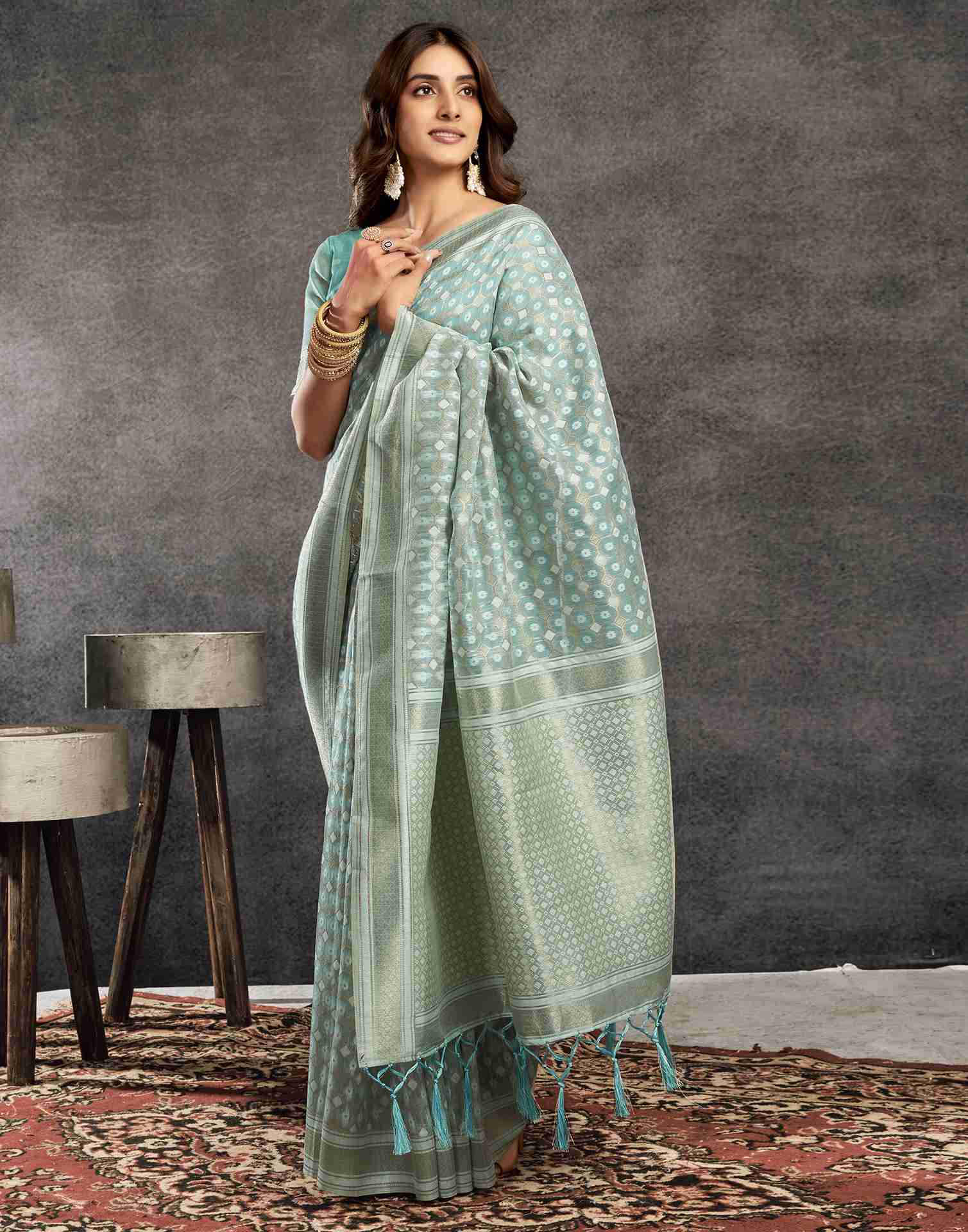 Light Turquoise Silk Woven Saree