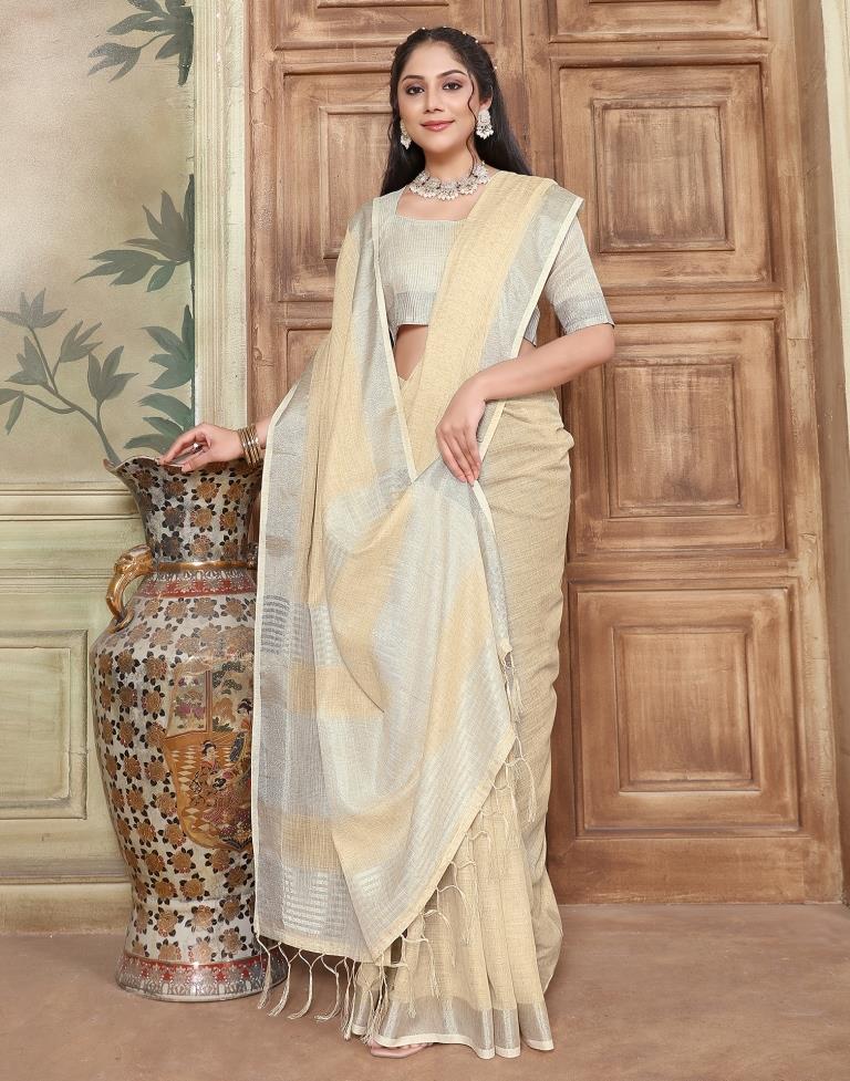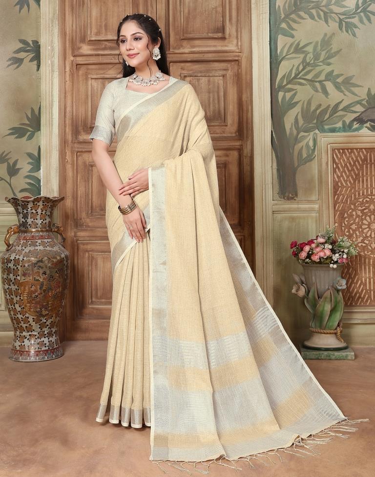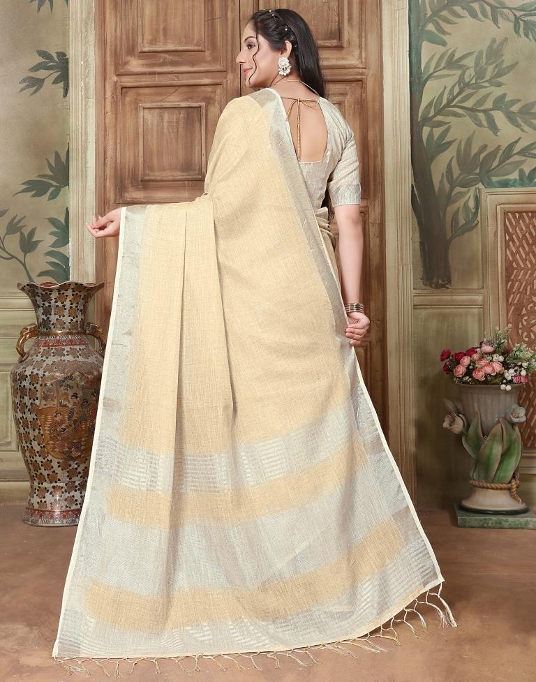 Light Yellow Cotton Self Woven Saree