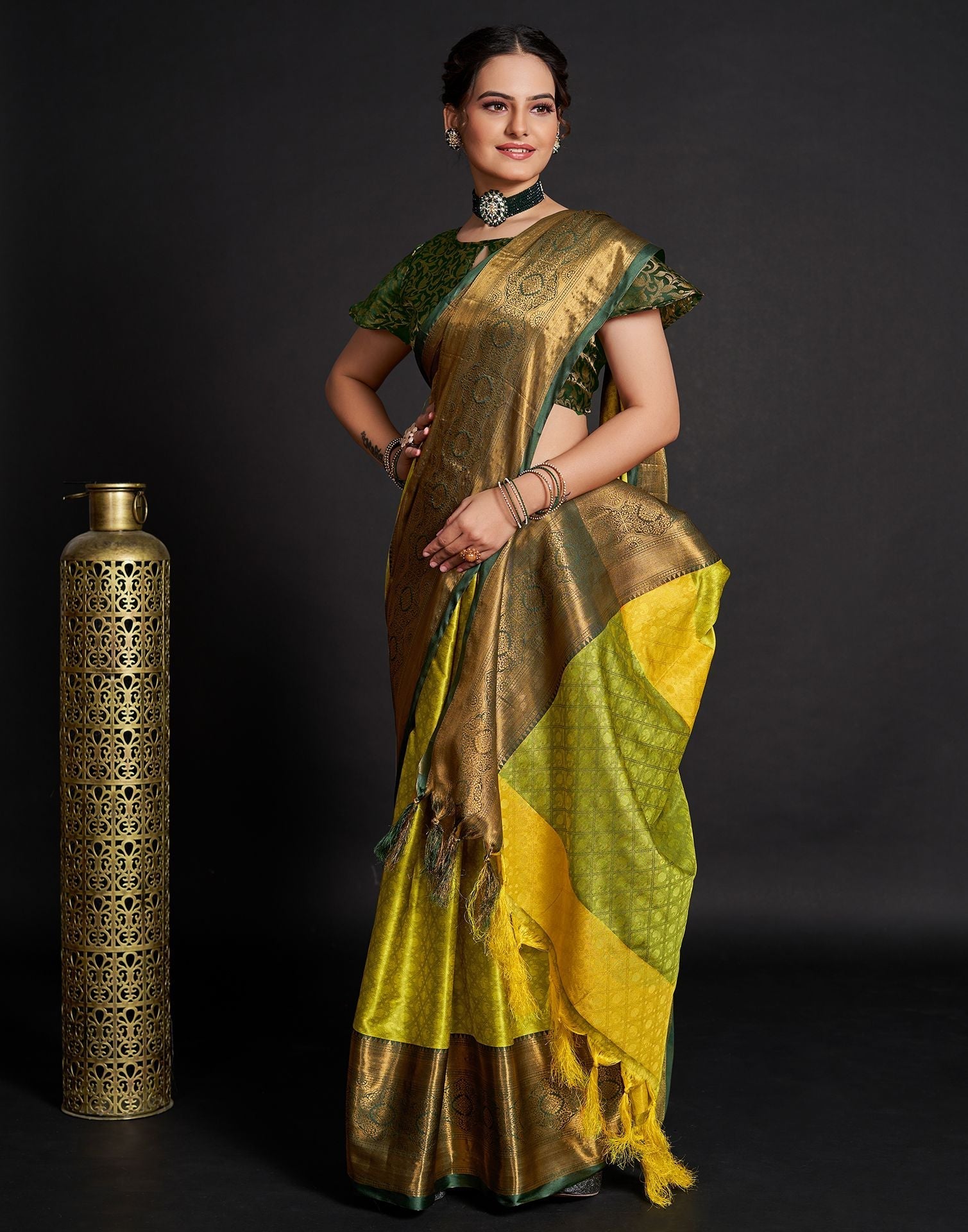 Lime Green Jacquard Silk Saree