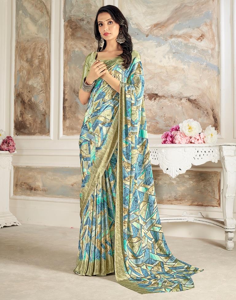 Moss Green Silk Printed Saree