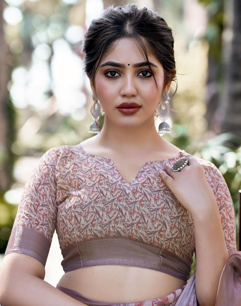 Multicoloured Linen Printed Saree