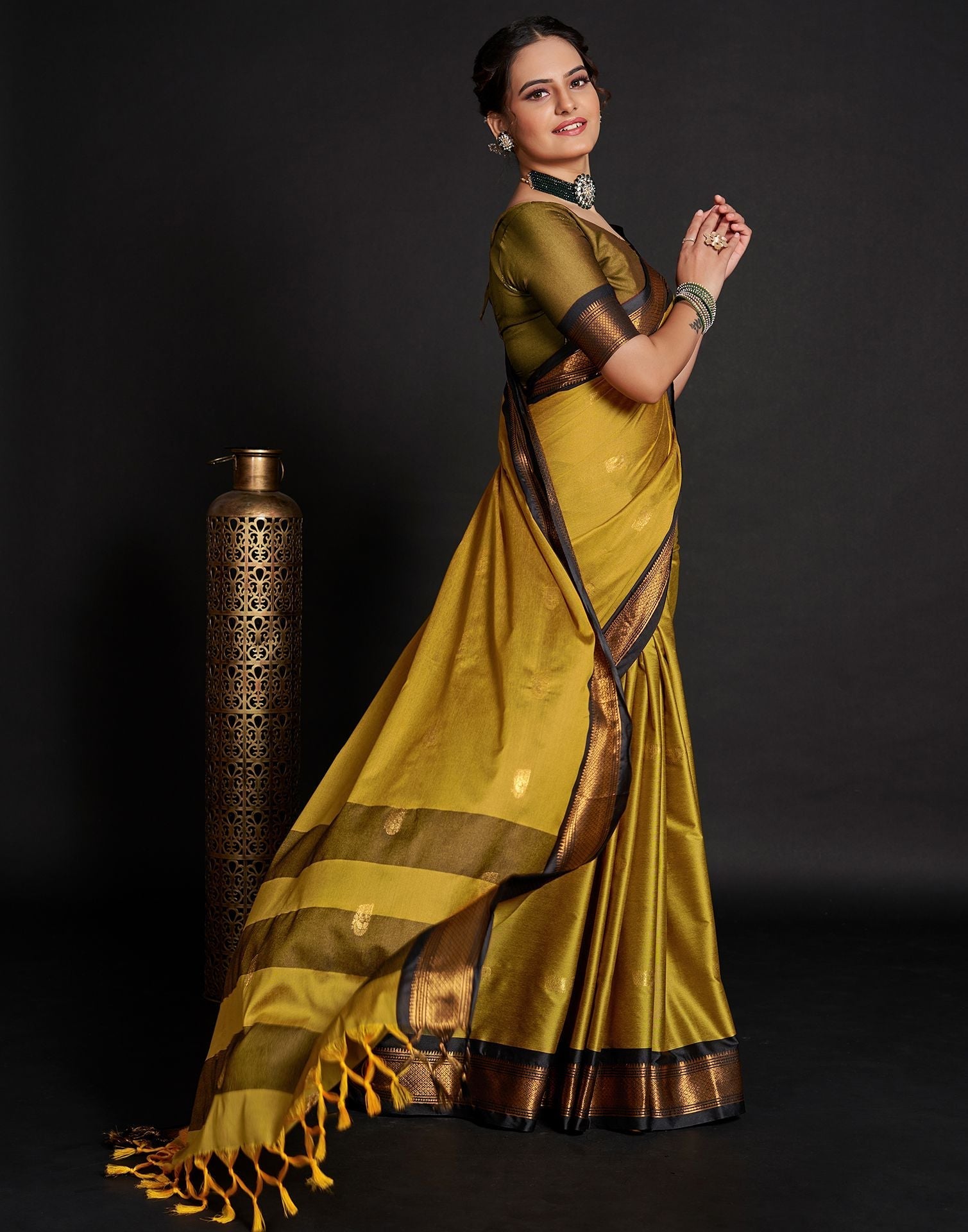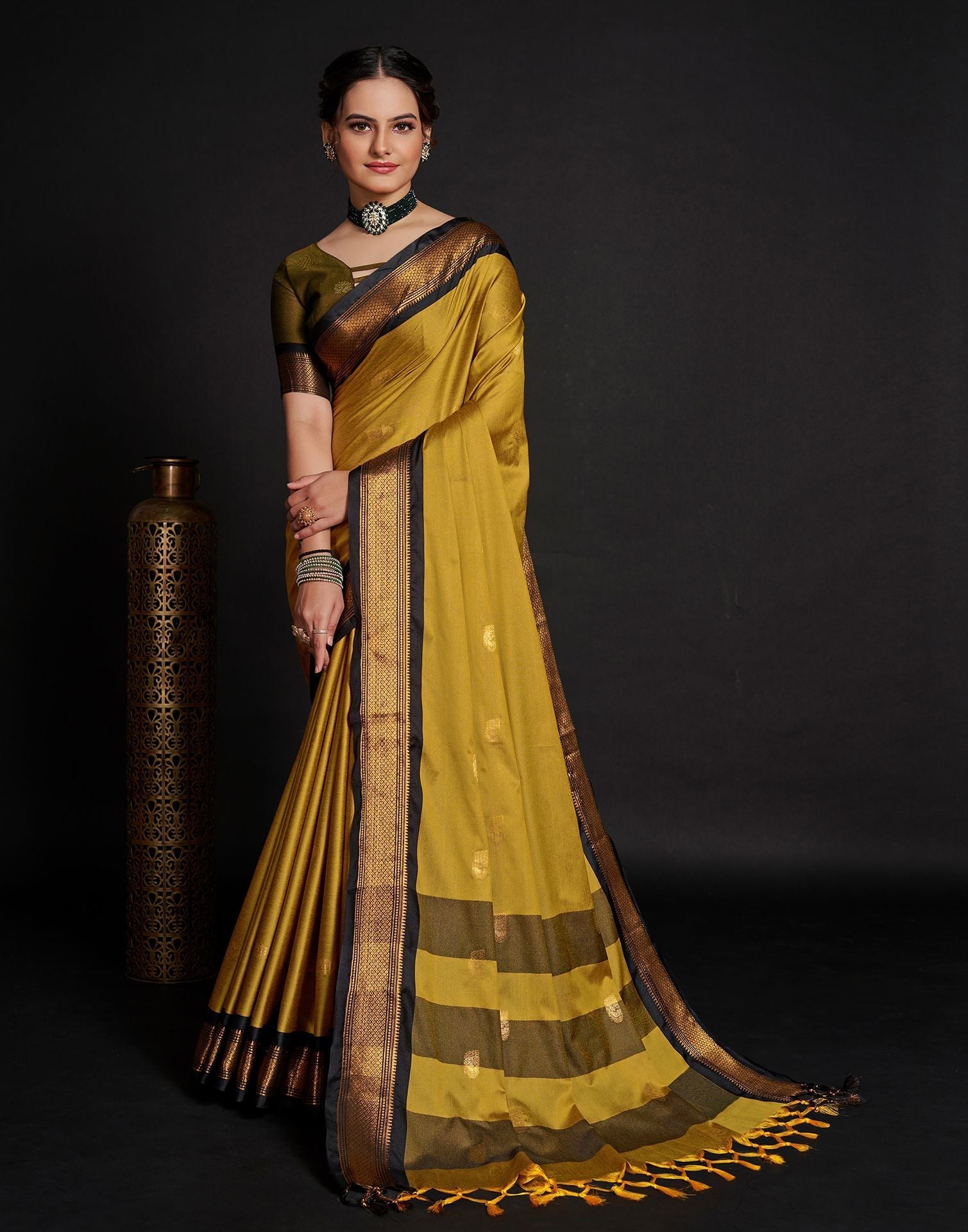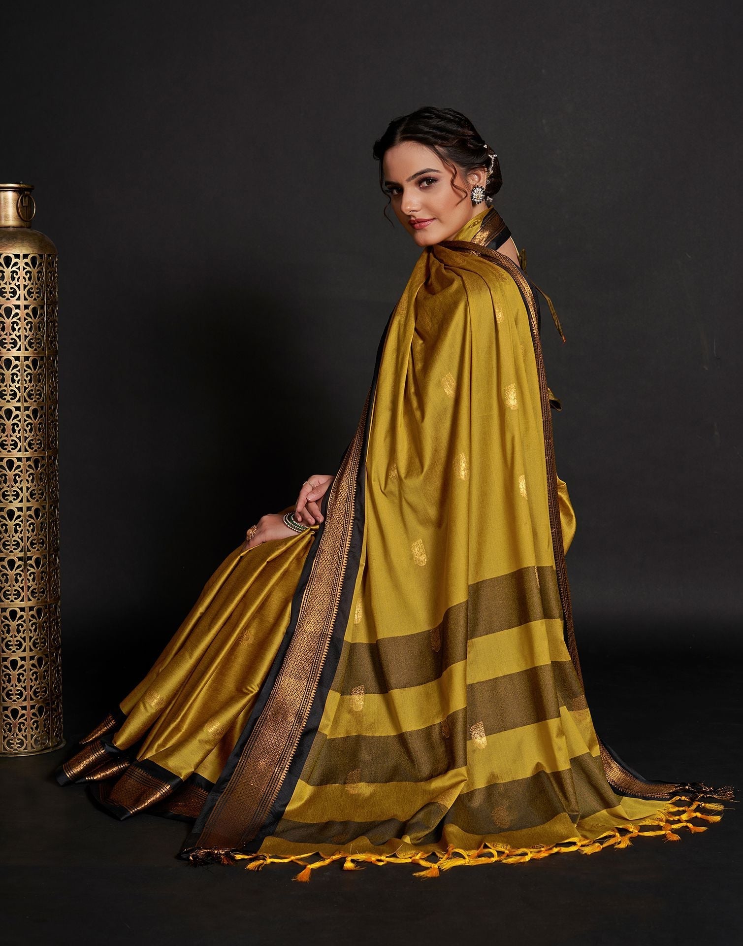 Yellow Jacquard Silk Saree3390S125