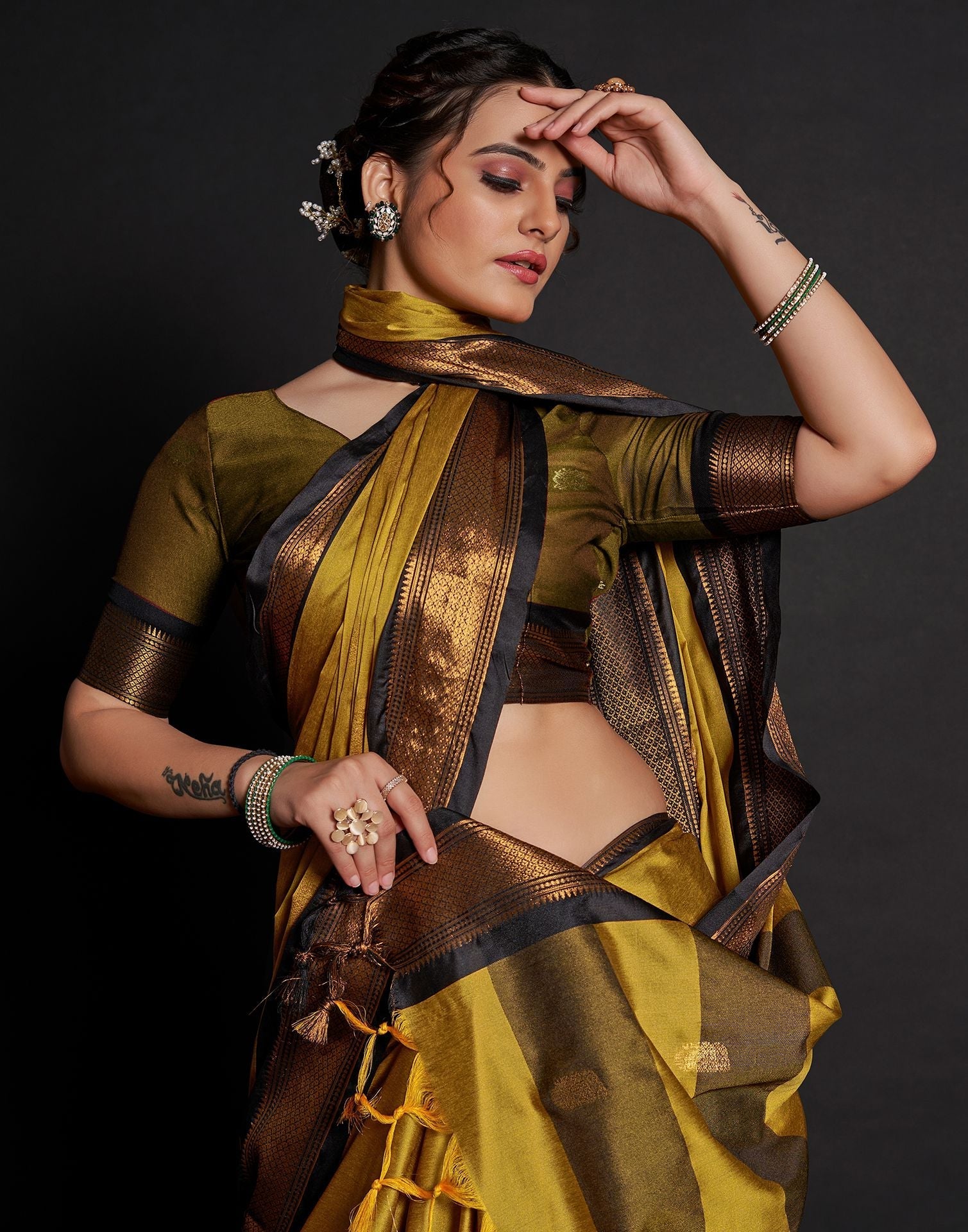Yellow Jacquard Silk Saree