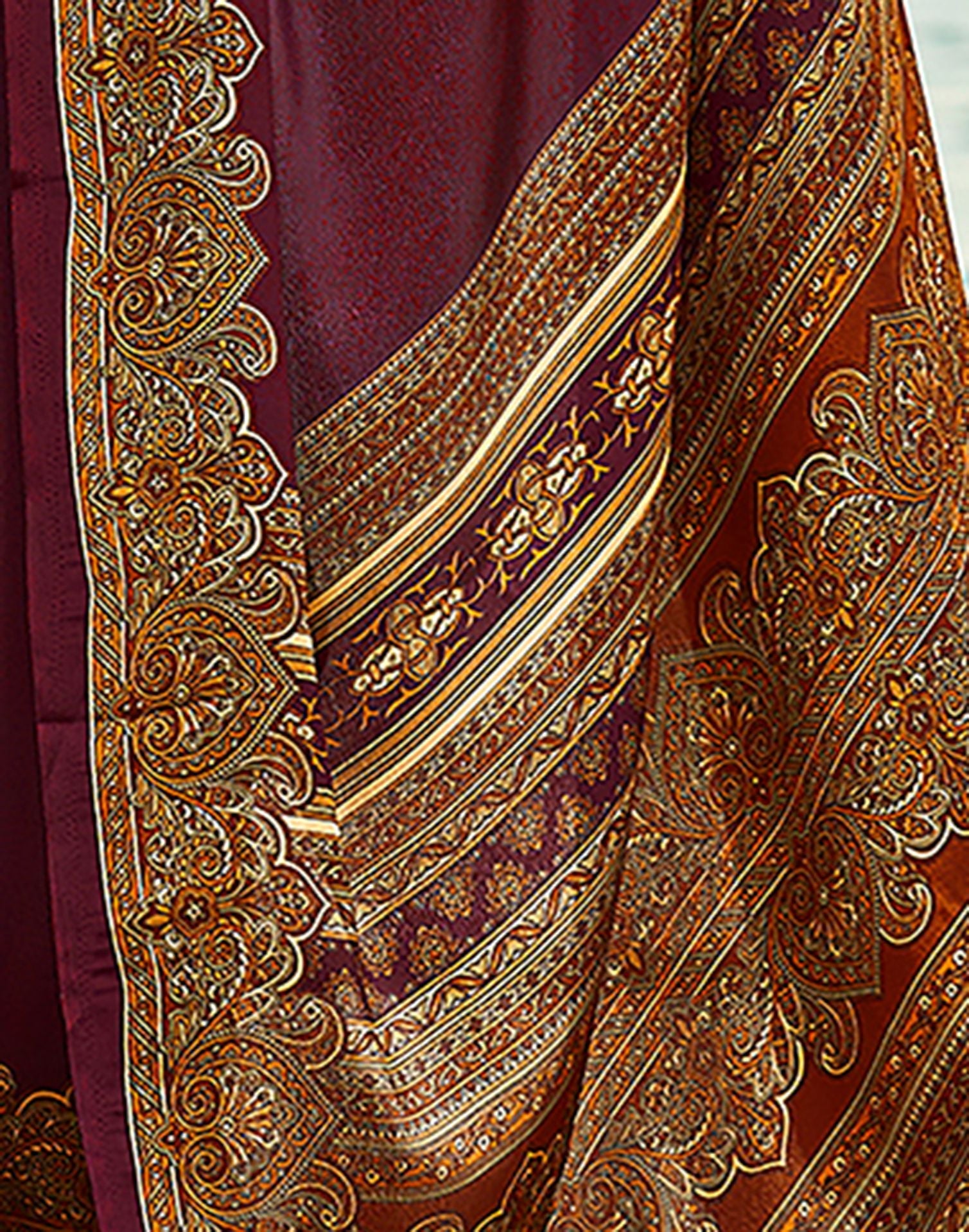 Brown Printed Silk Saree
