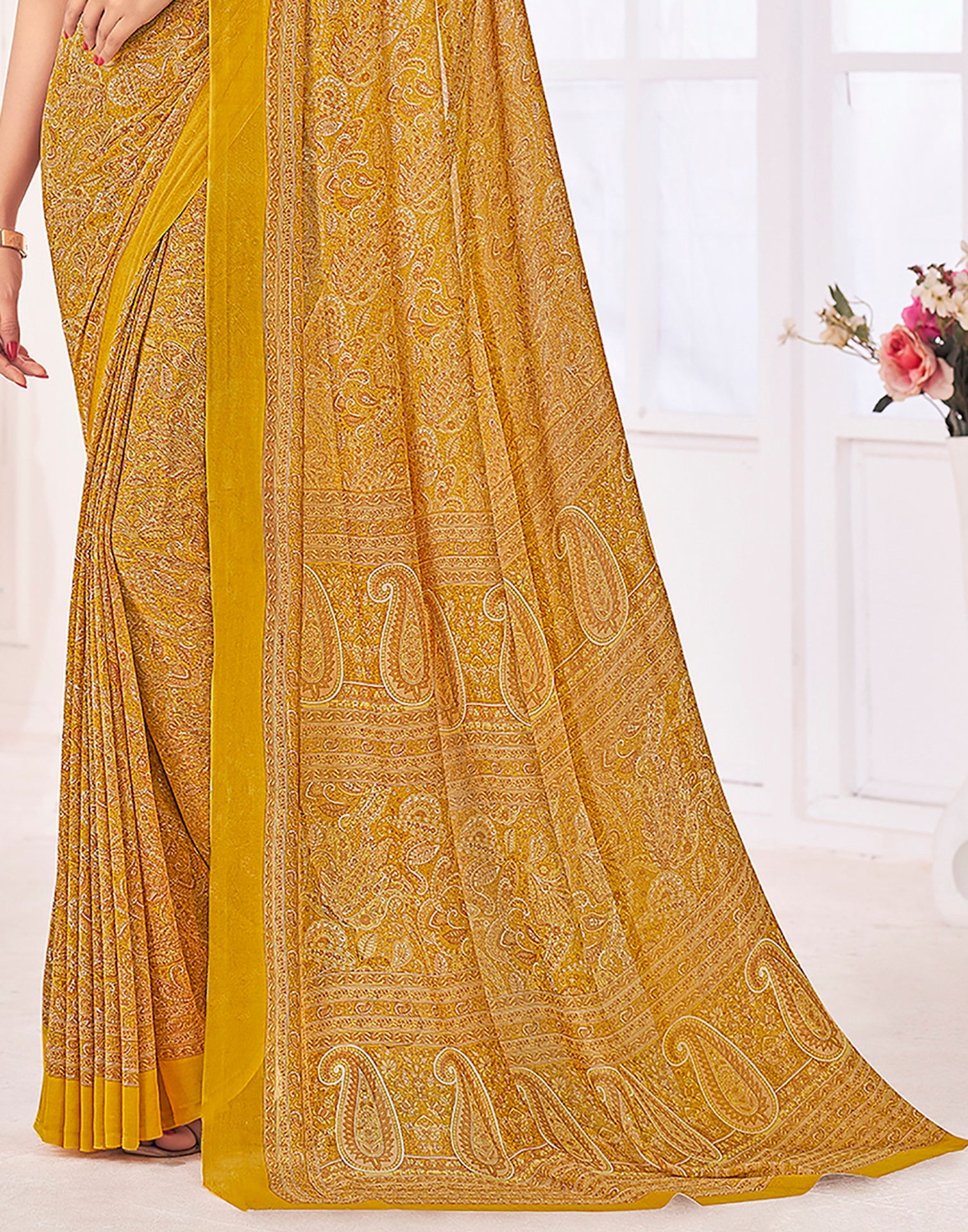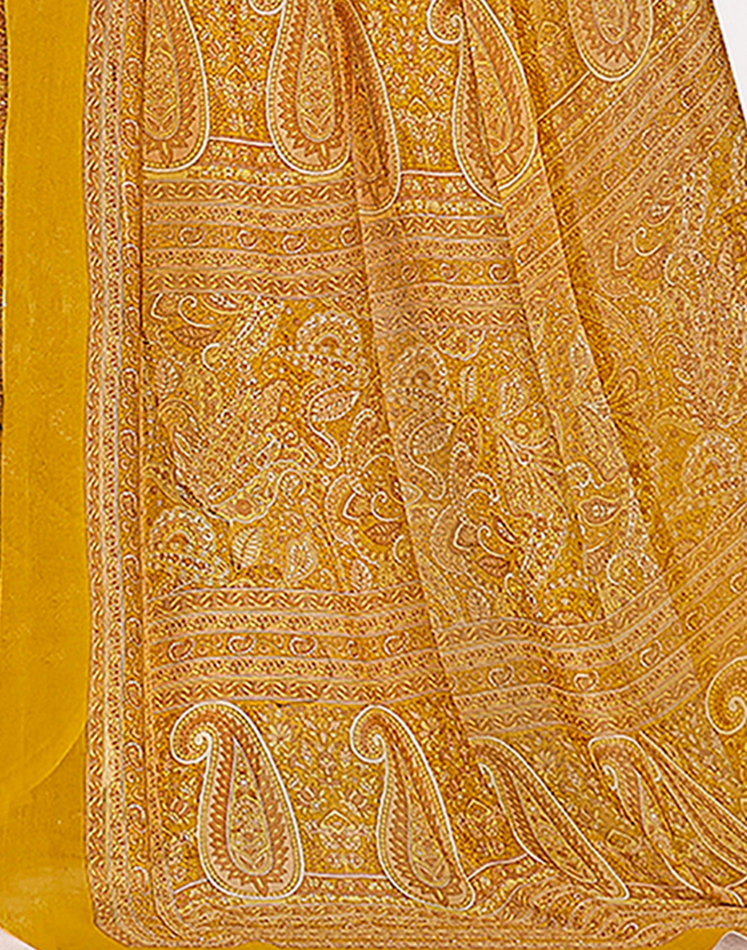 Mustard Yellow Georgette Printed Saree