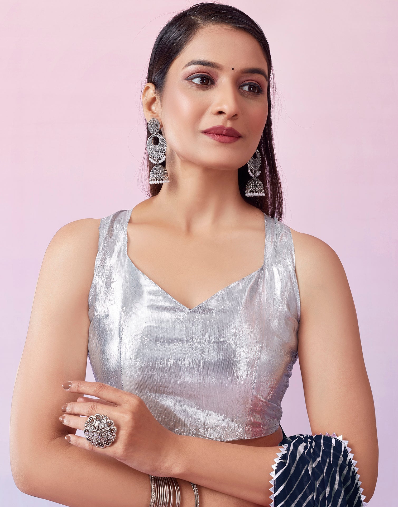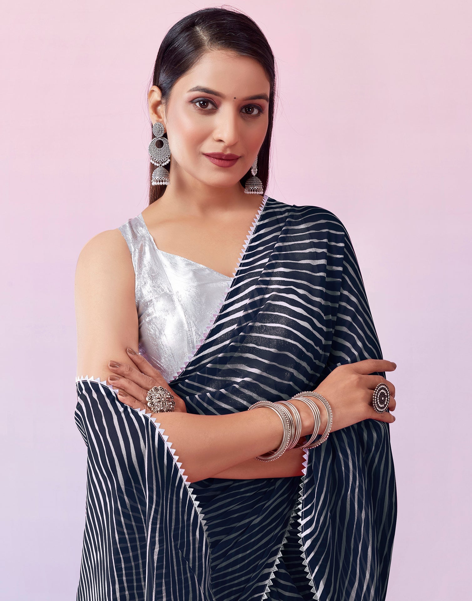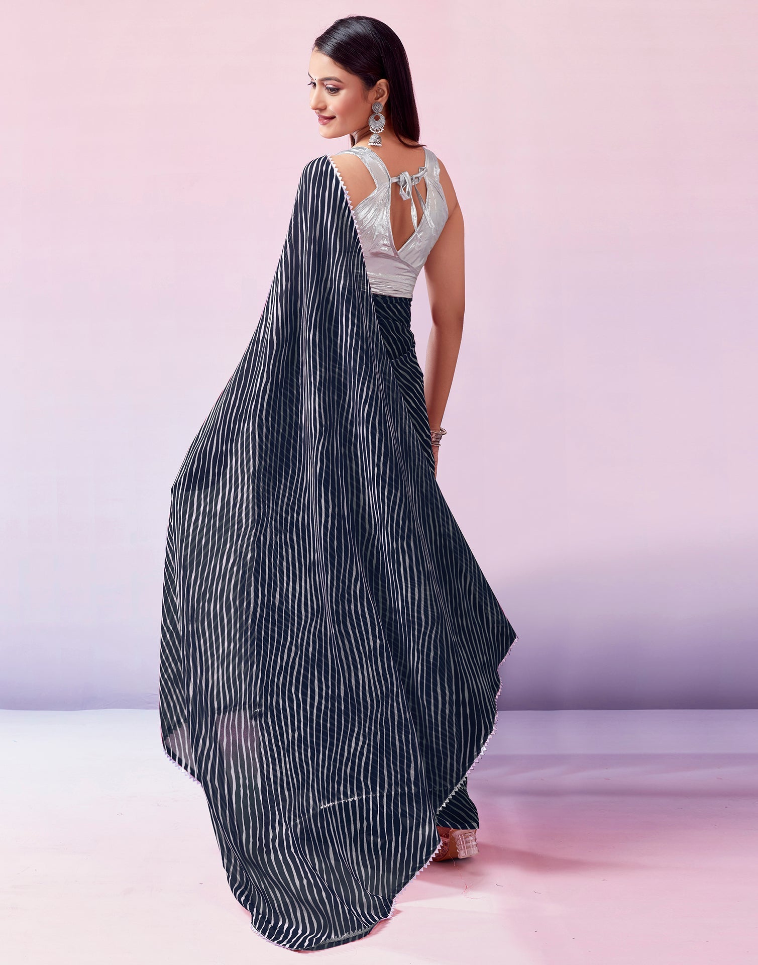 Navy Blue Georgette Printed Saree