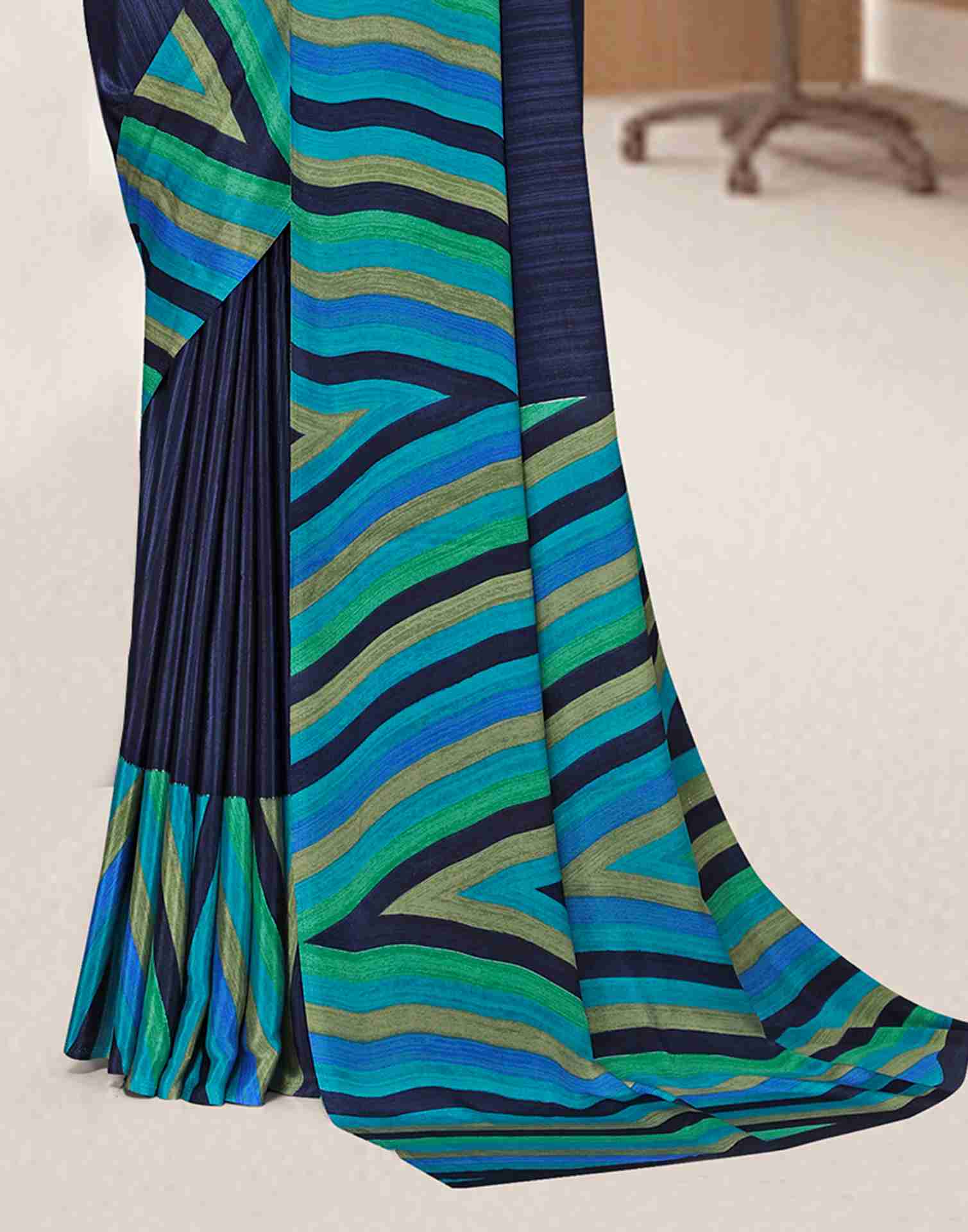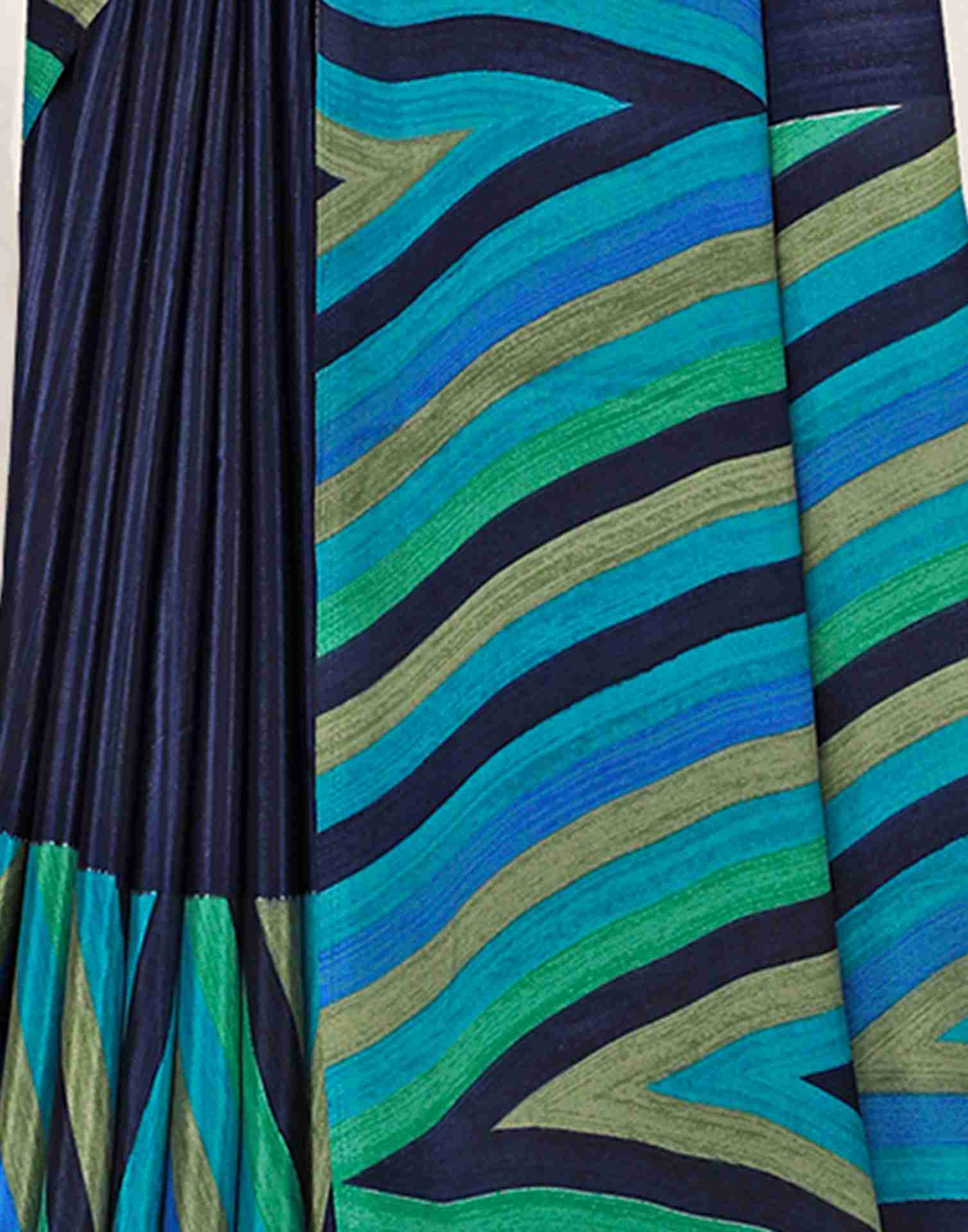 Navy Blue Polyester Geometric Printed Saree