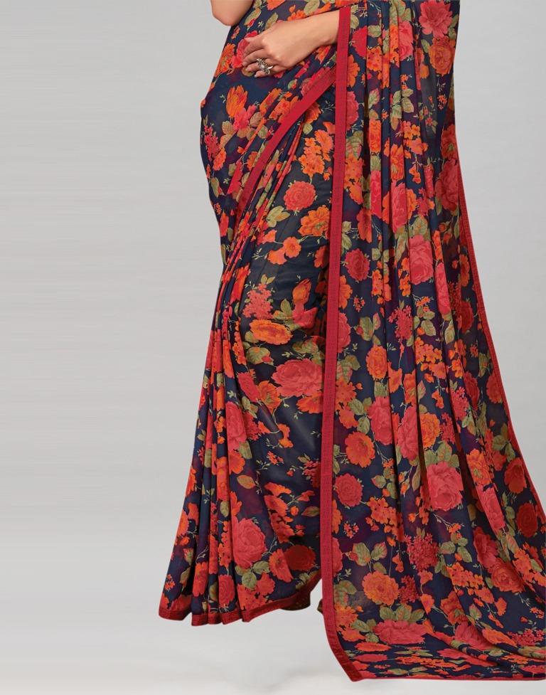 Navy Blue Printed Georgette Saree