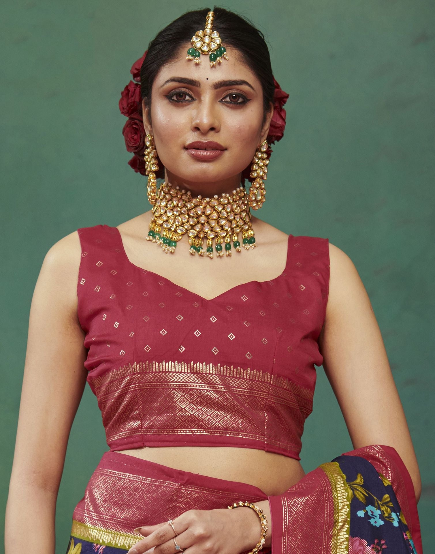 Navy Blue Printed Silk Saree