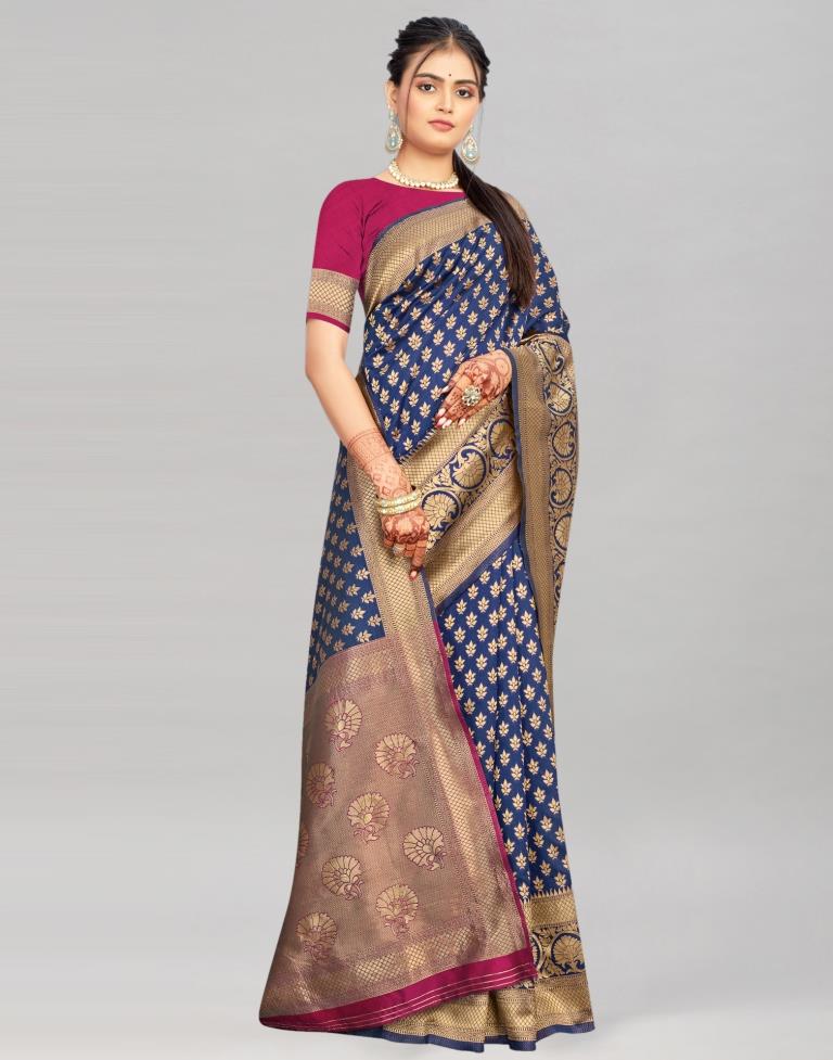 Navy Blue Weaving Silk Saree