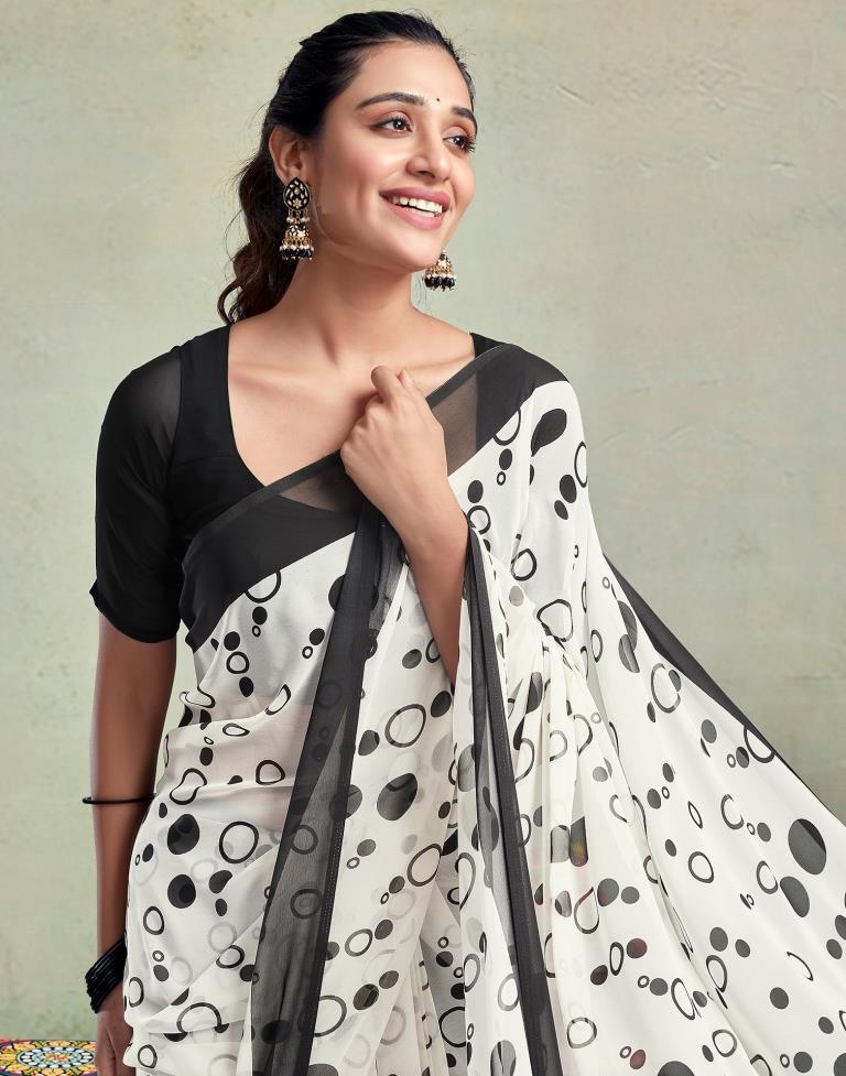 Off White Georgette Printed Saree