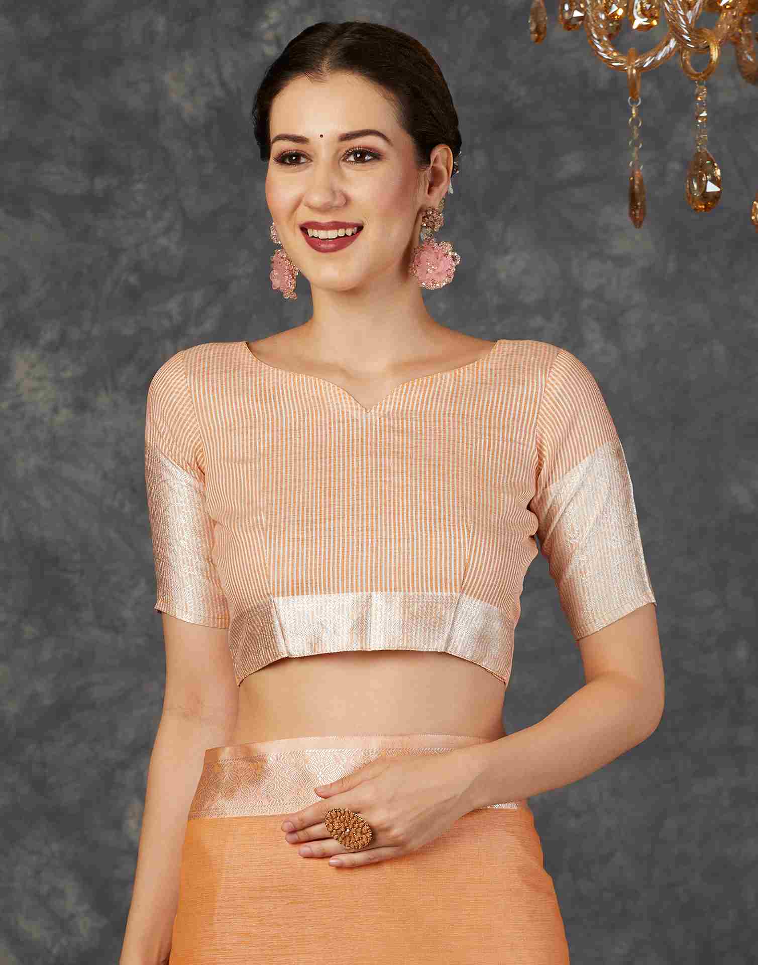 Light Orange Cotton Woven Banarasi Saree