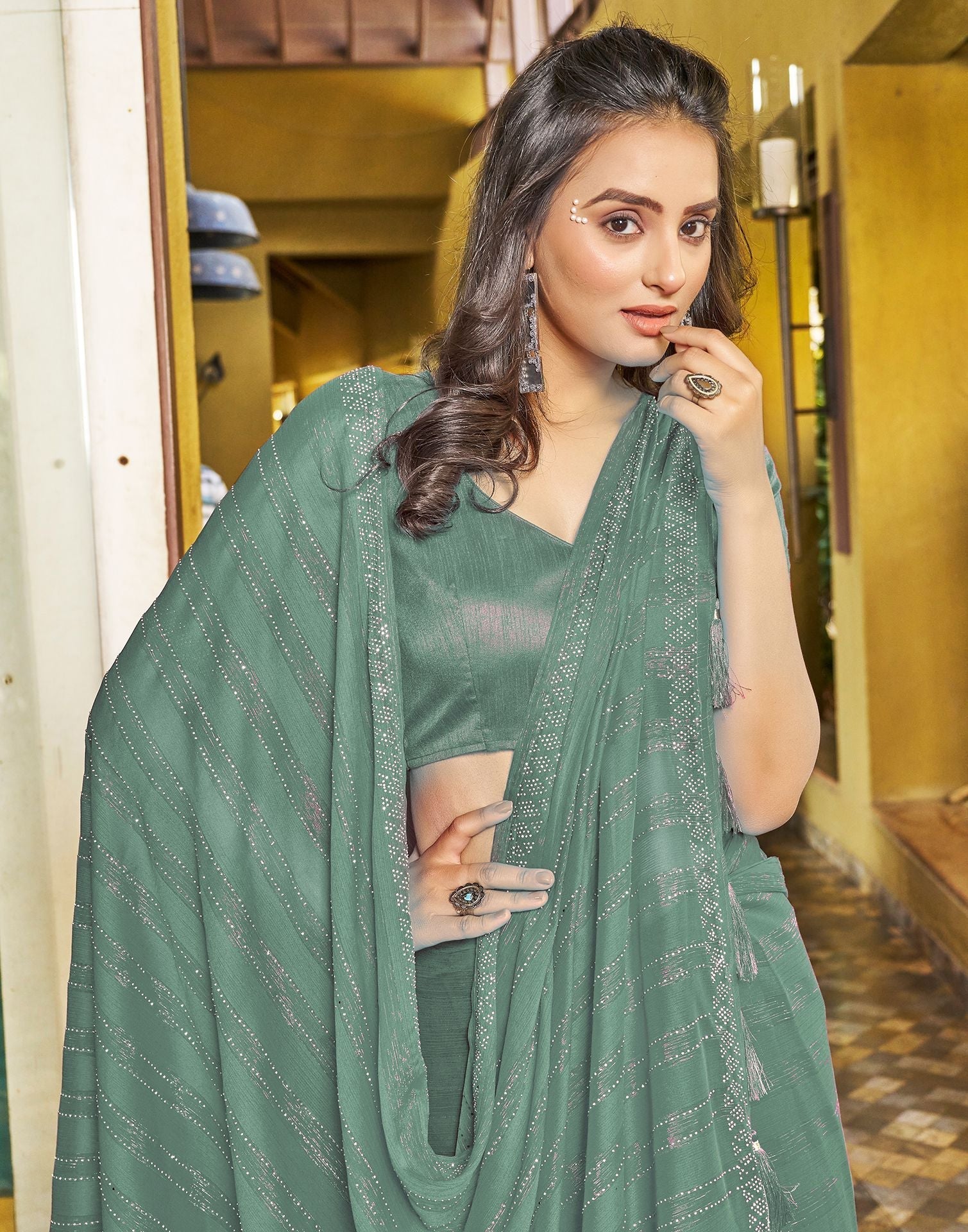 Pastel Green Plain Chiffon Saree