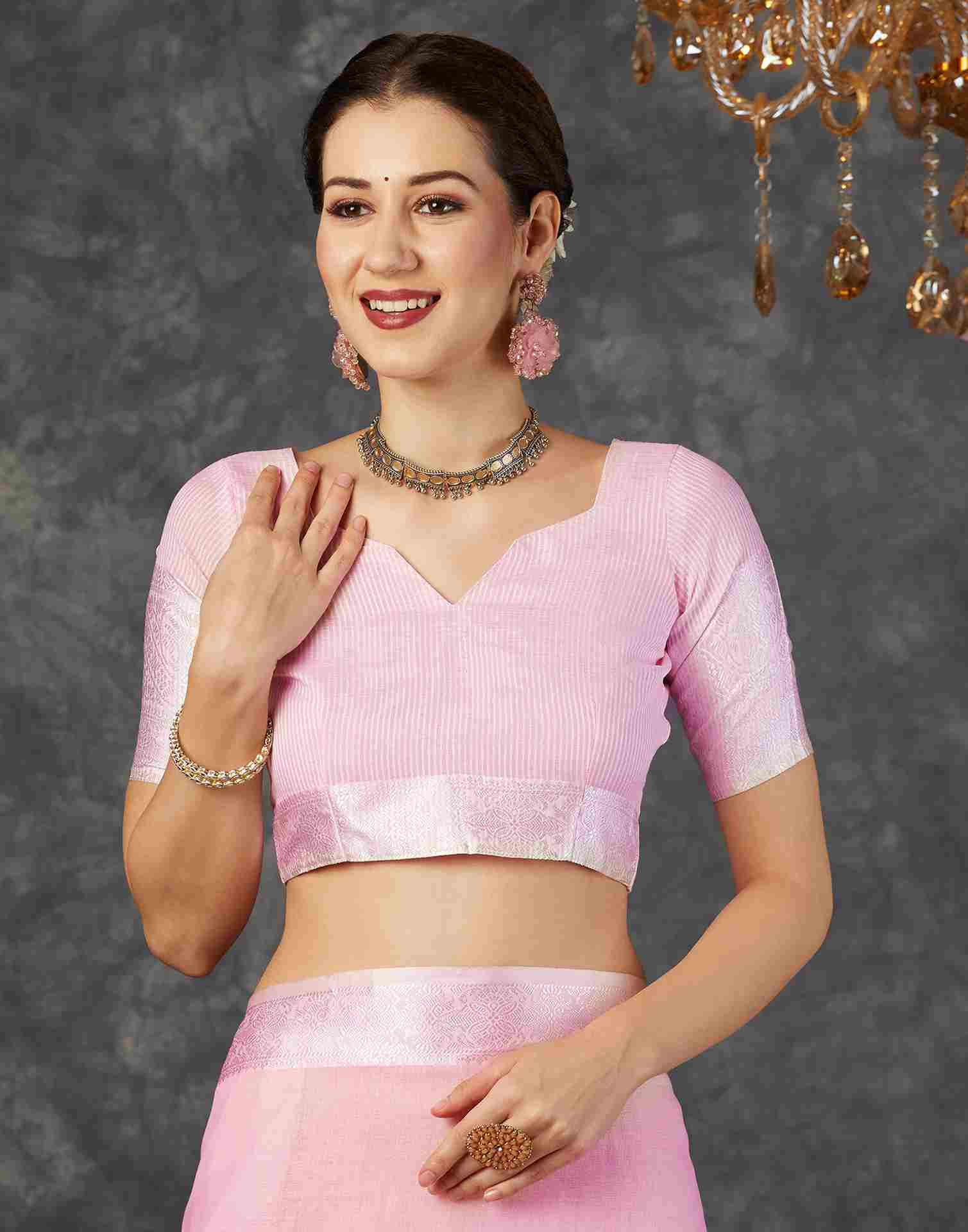 Light Pink Cotton Woven Banarasi Saree