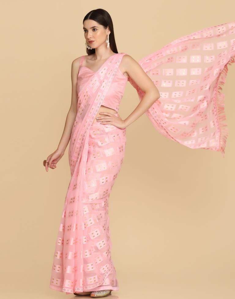 Pink Georgette Plain Saree