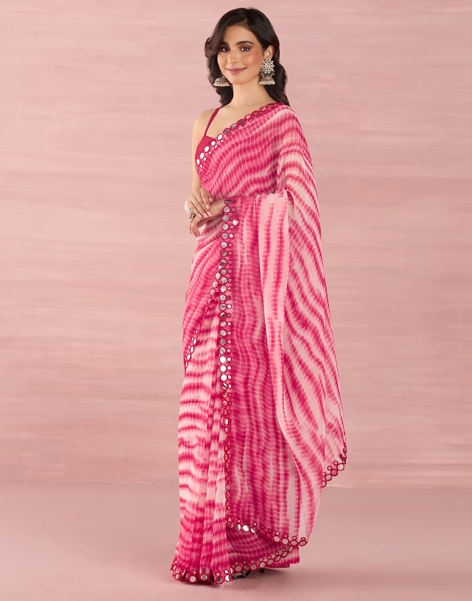 Pink Georgette Printed Saree