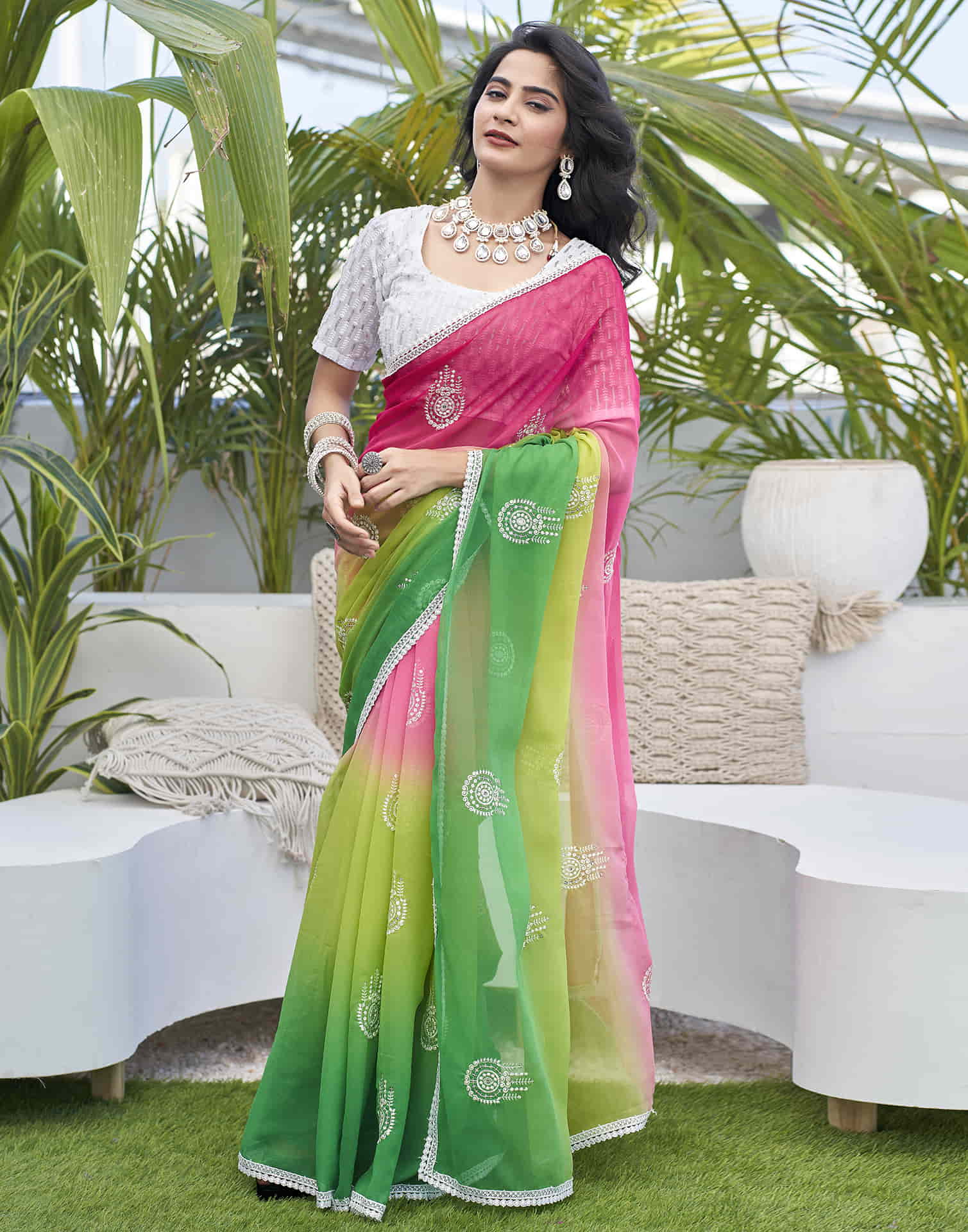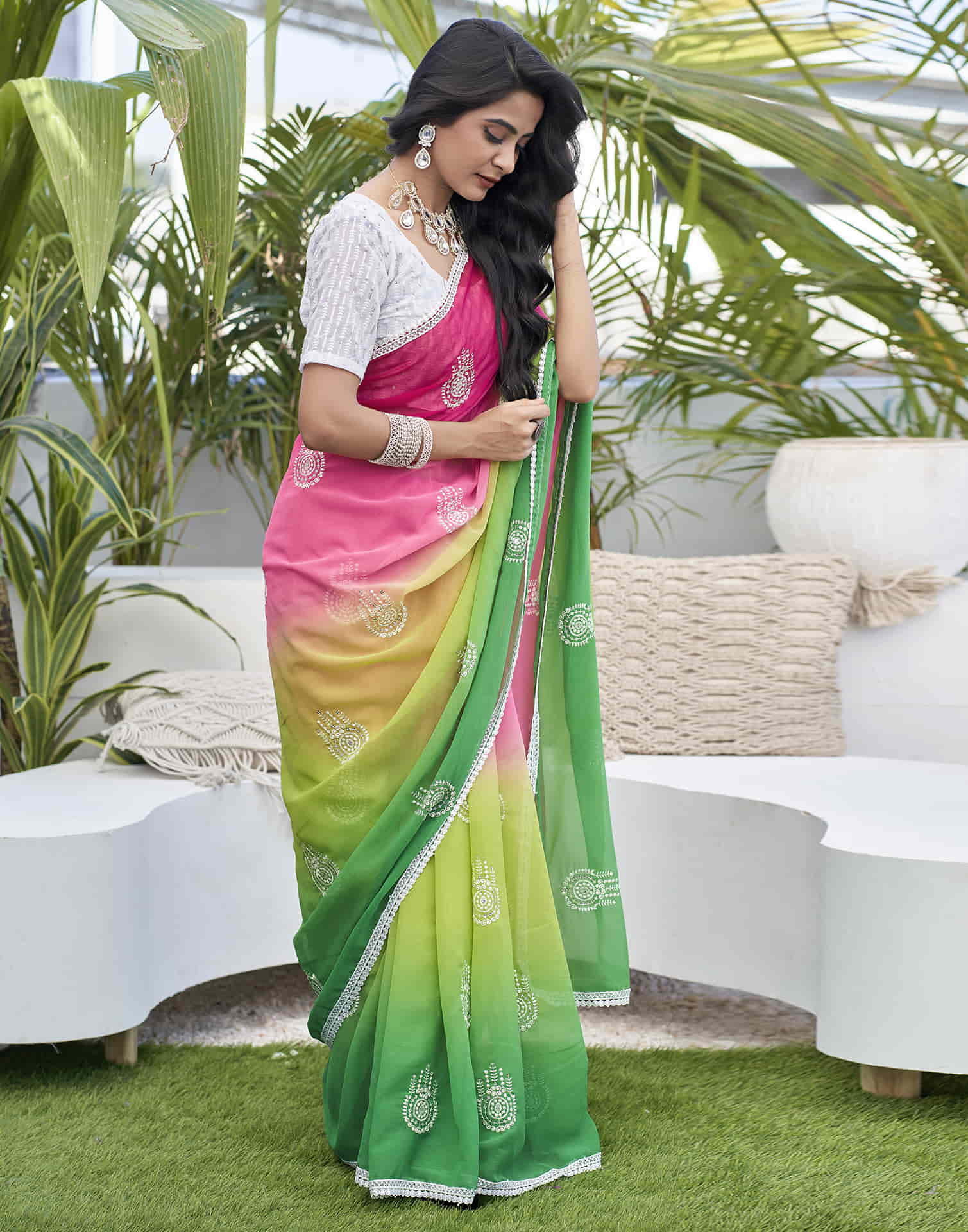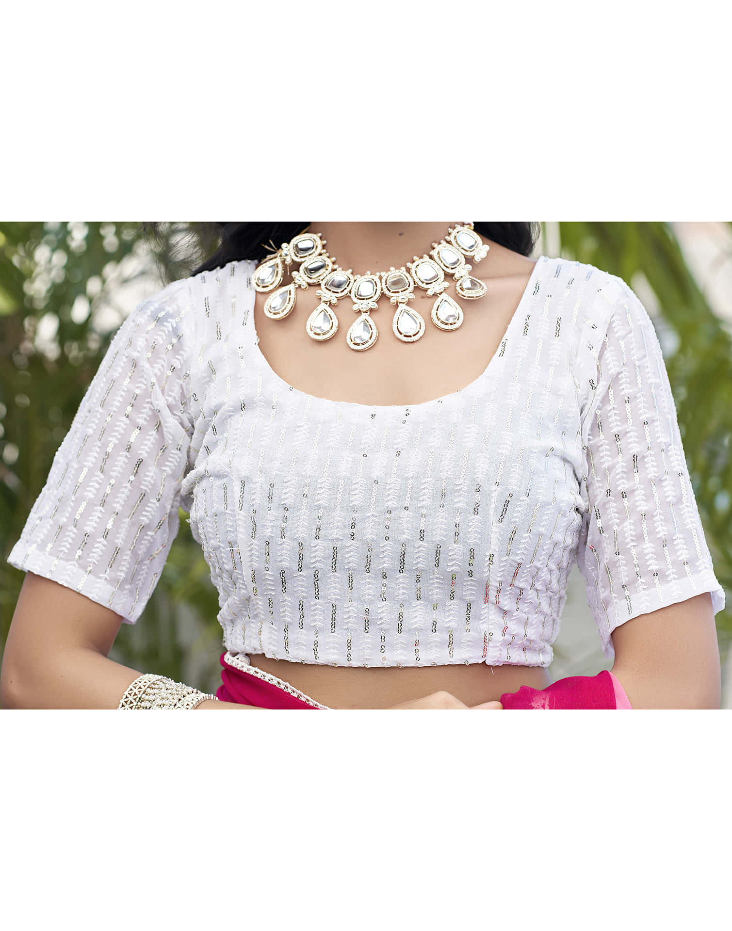 Pink Georgette Sequence Swarovski Saree
