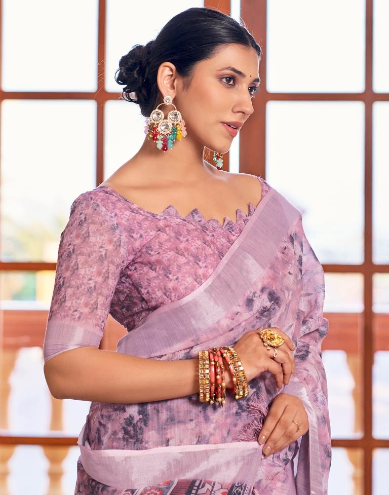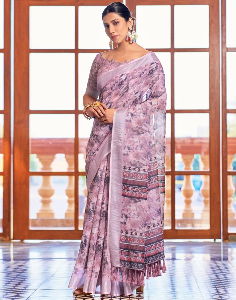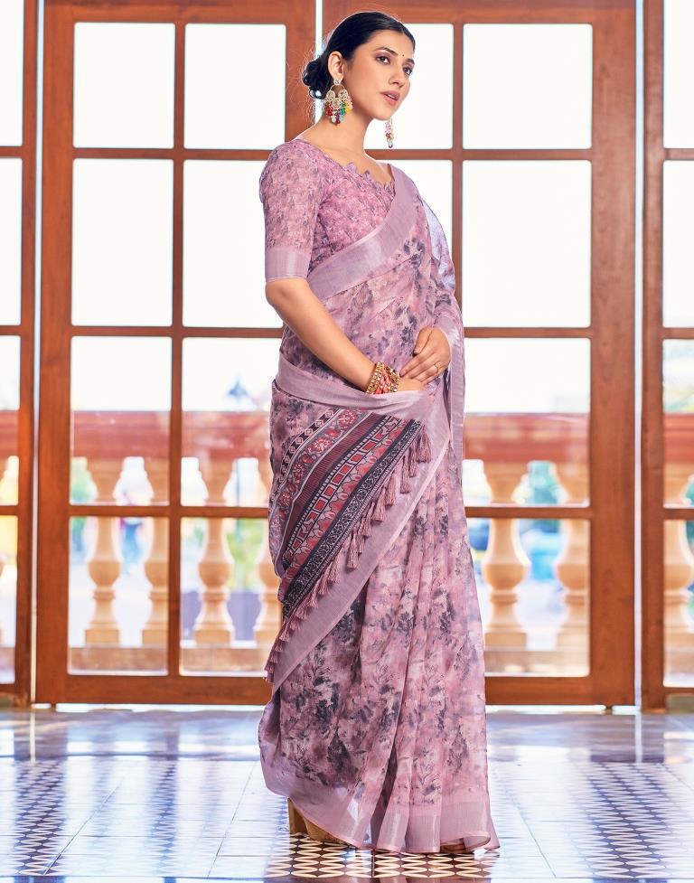 Pink Linen Printed Saree
