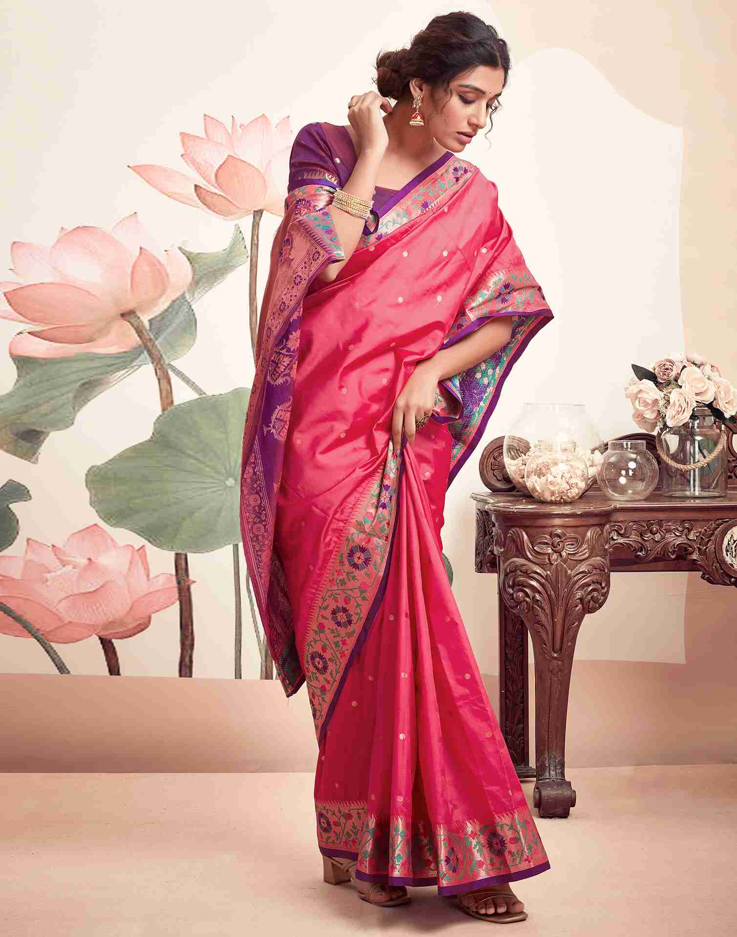 Pink Silk Plain Saree