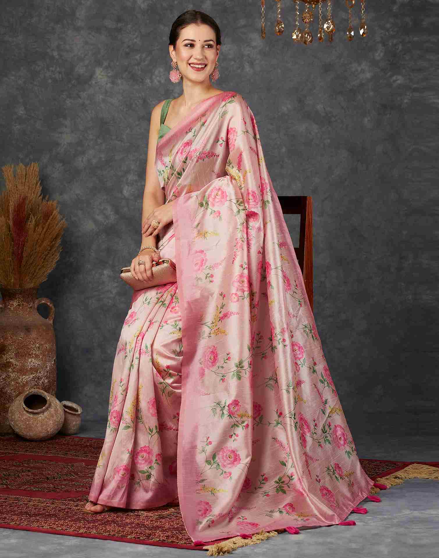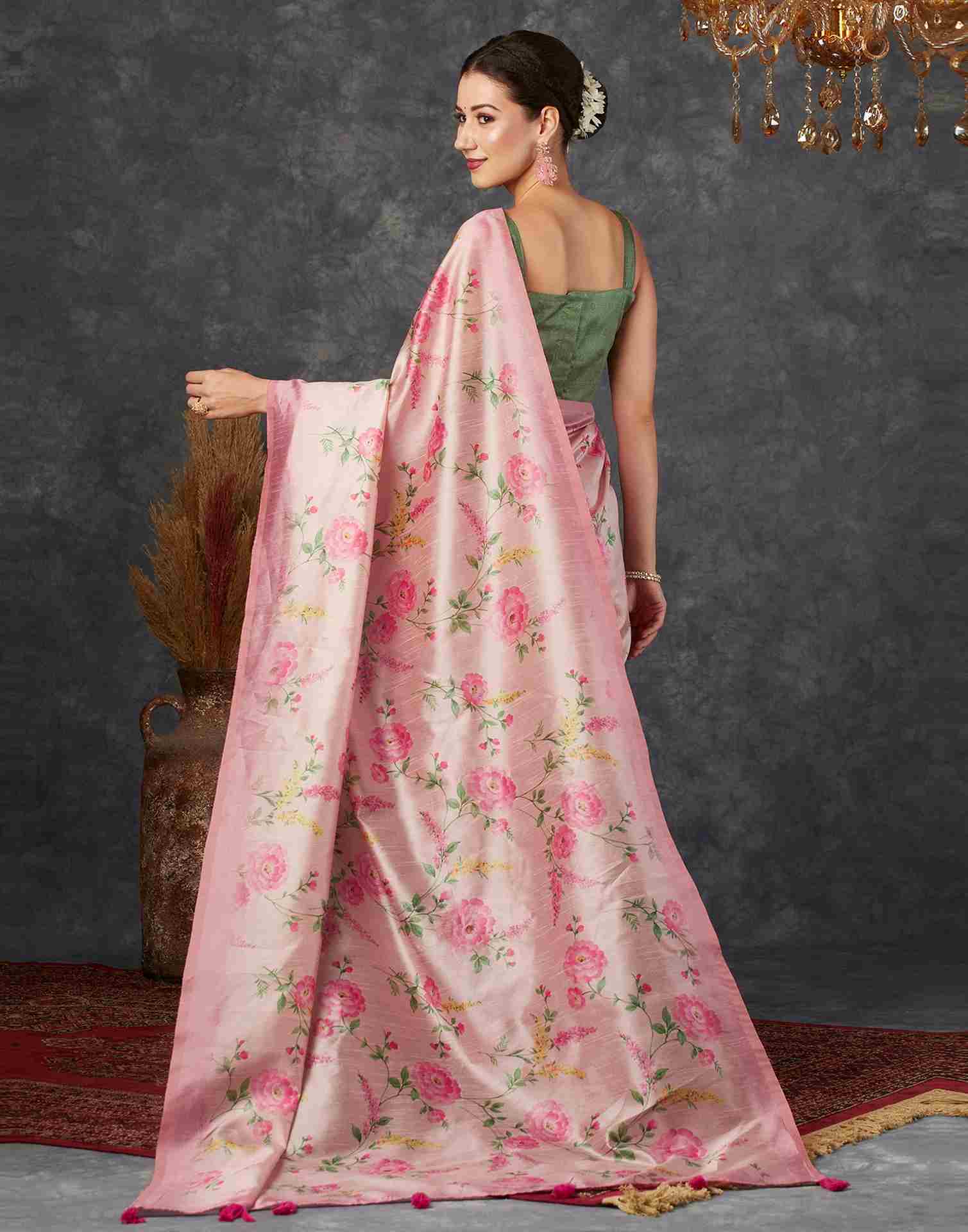 Light Pink Silk Printed Saree