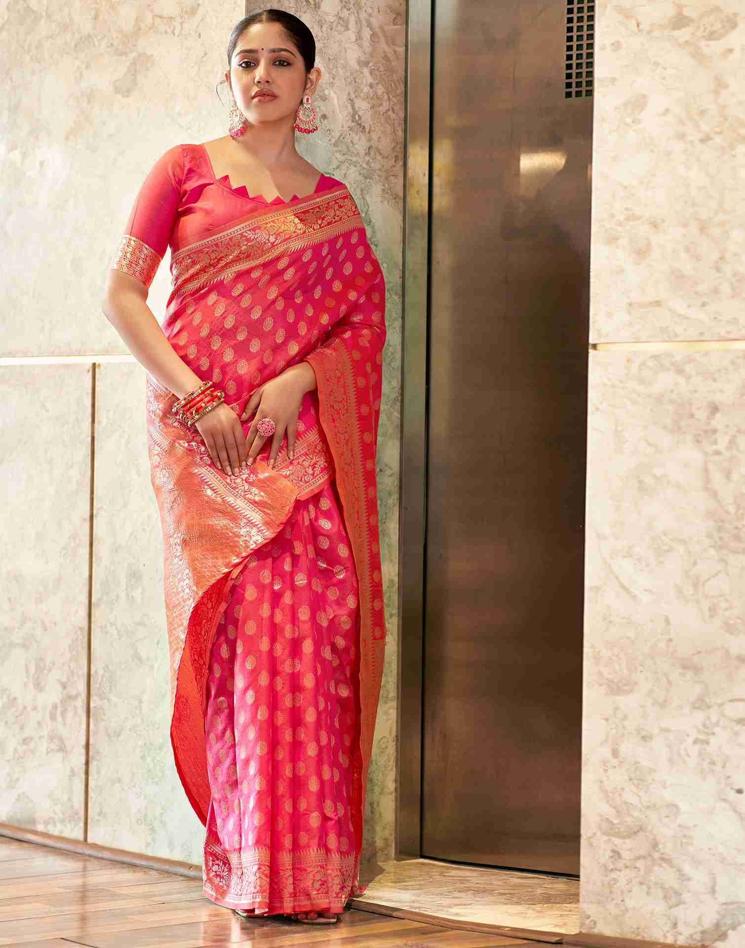 Pink Silk Weaving Saree