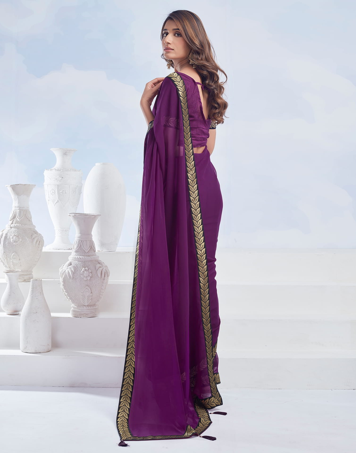 Purple Plain Georgette Saree