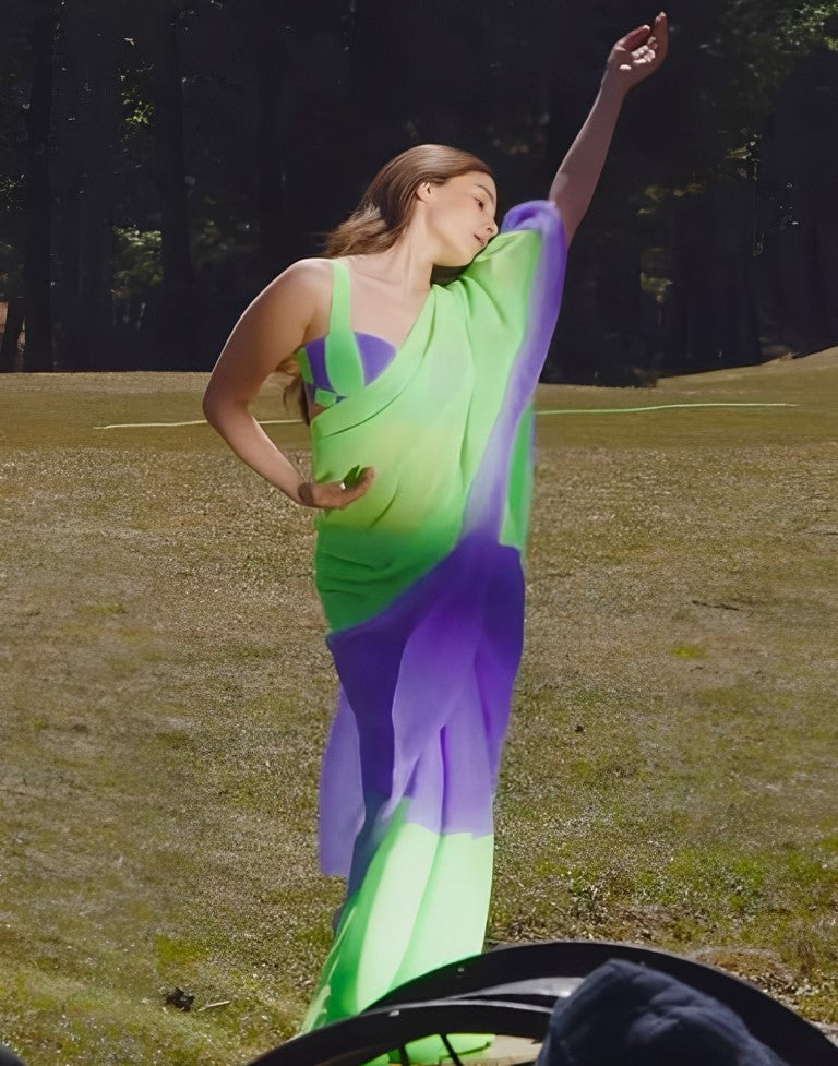 Purple Plain Printed Georgette Saree
