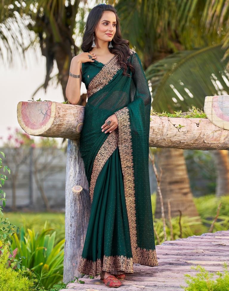 Rama Green Chiffon Embroidery Saree