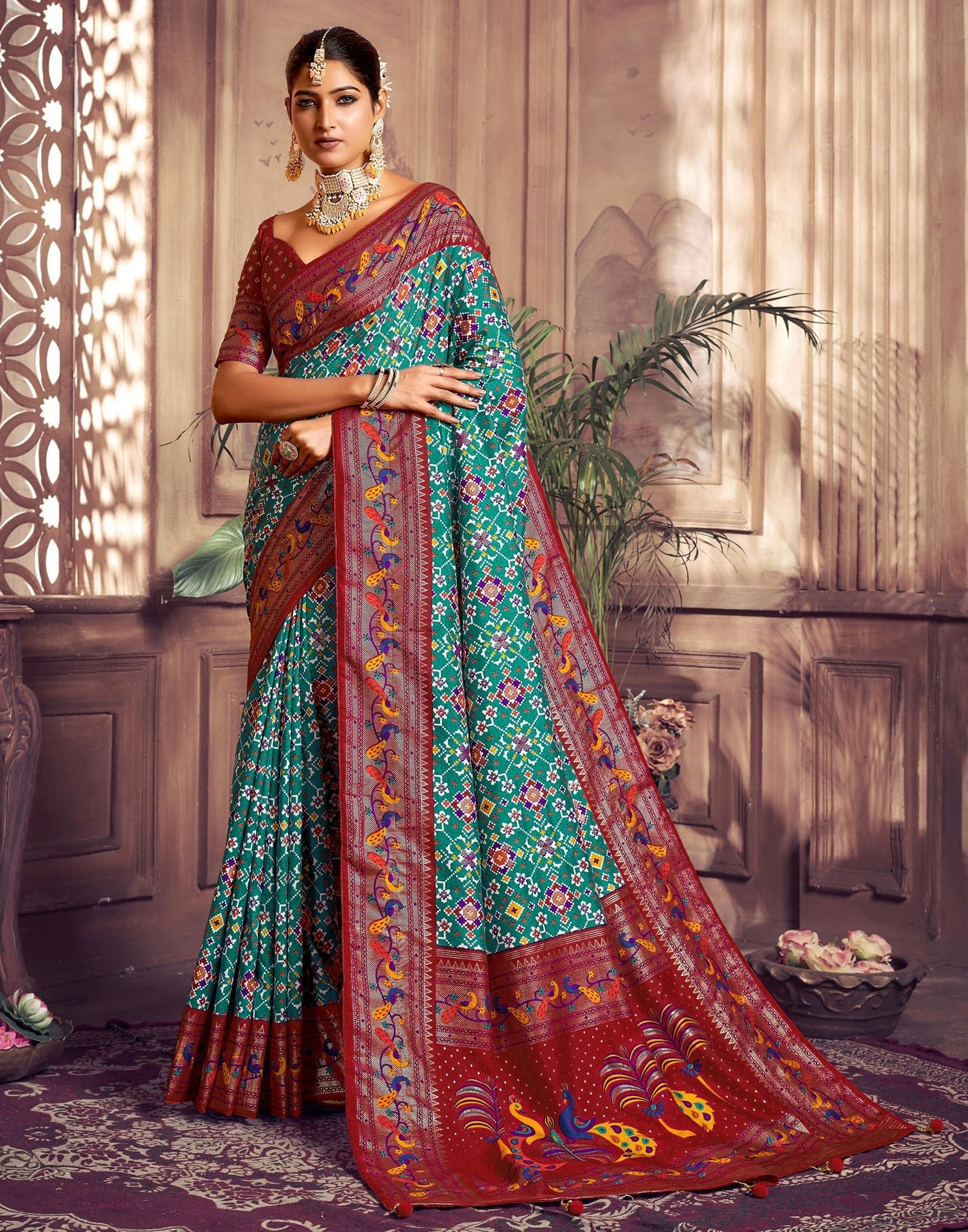 Rama Printed Silk Saree