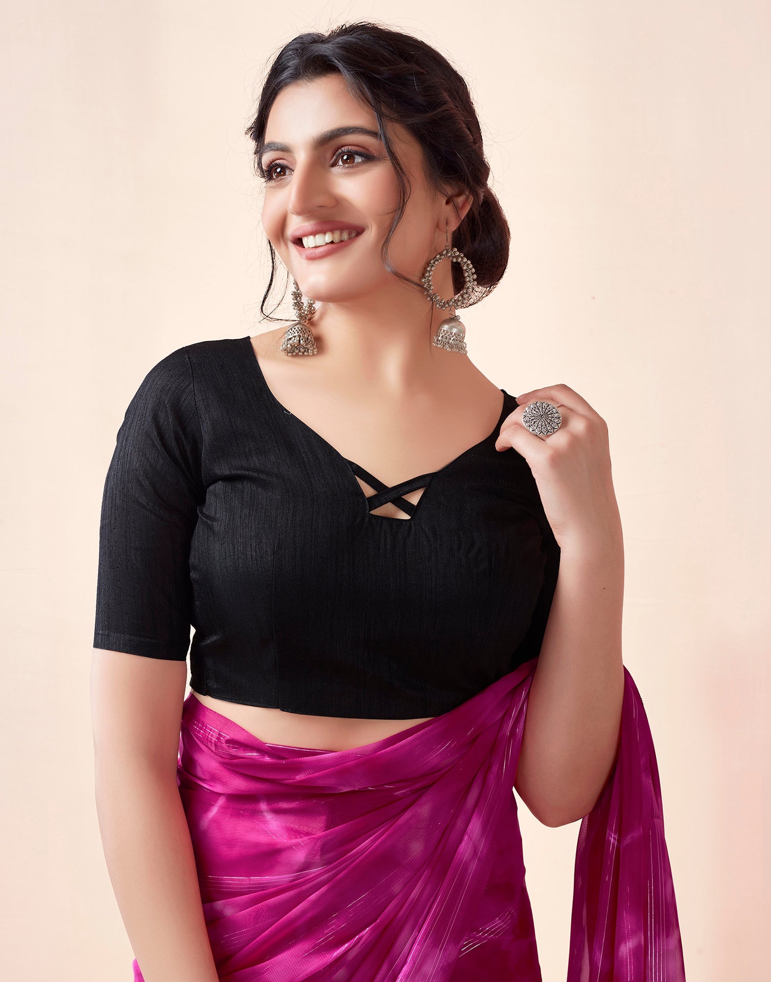 Ready to Wear Rani Pink Georgette Printed Saree