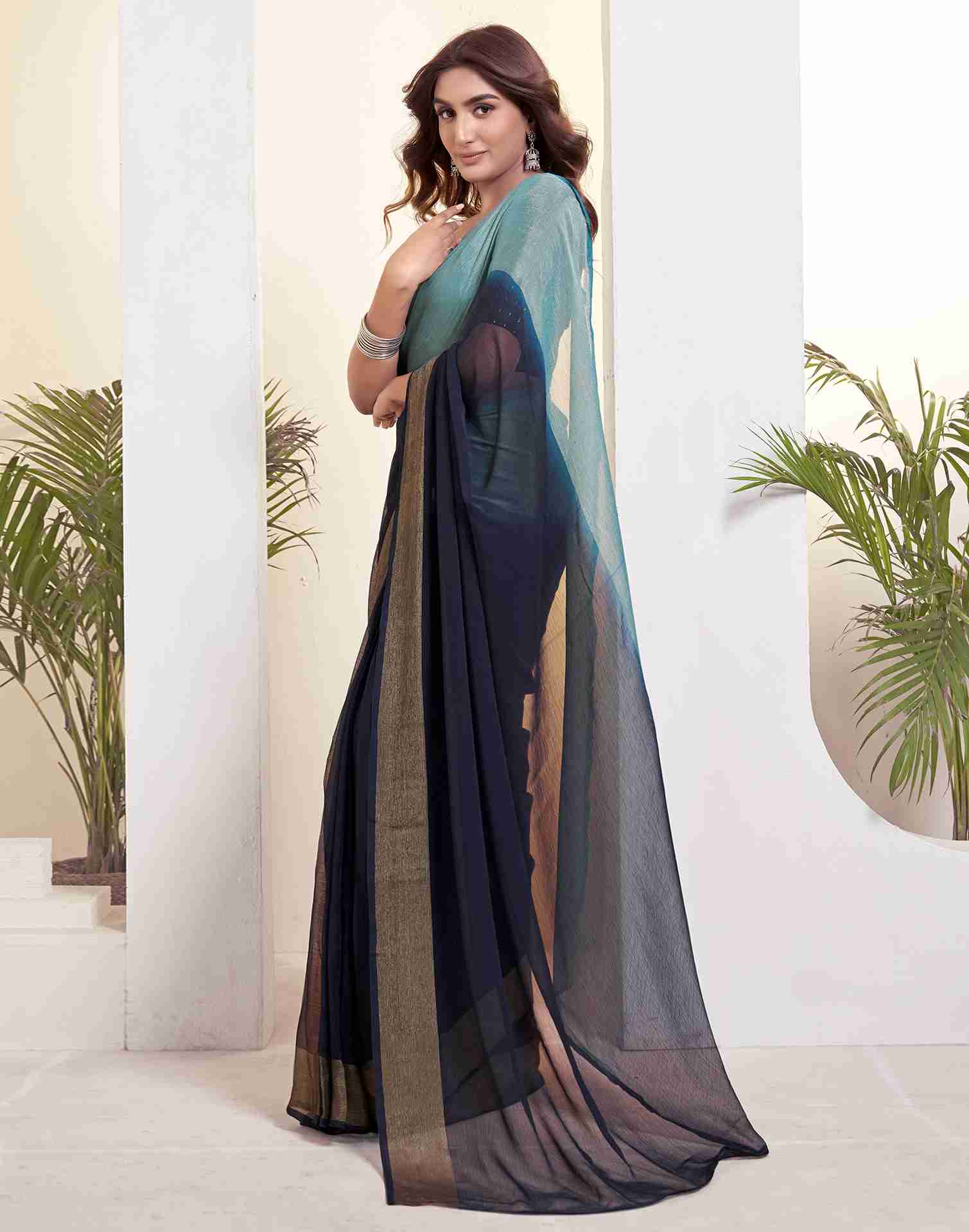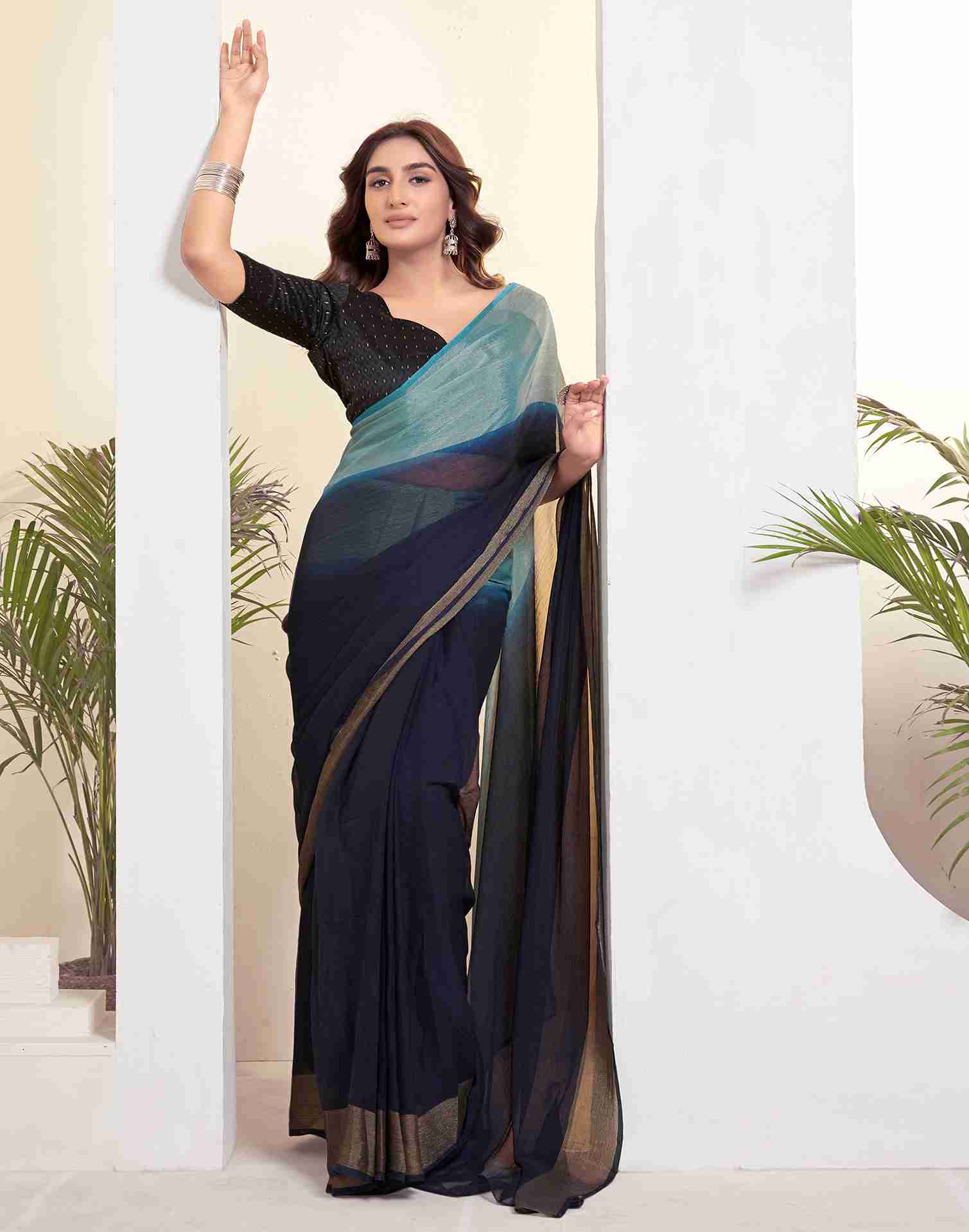 Ready To Wear Navy Blue Chiffon Plain Saree