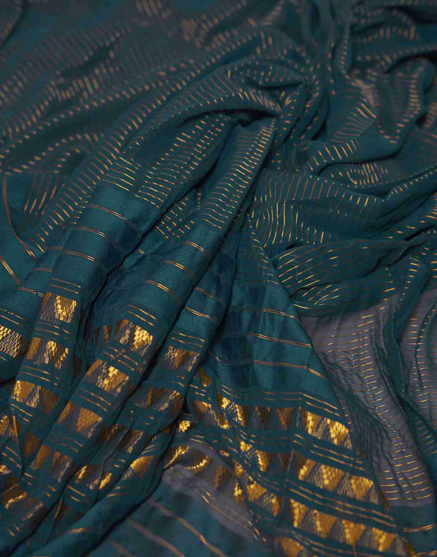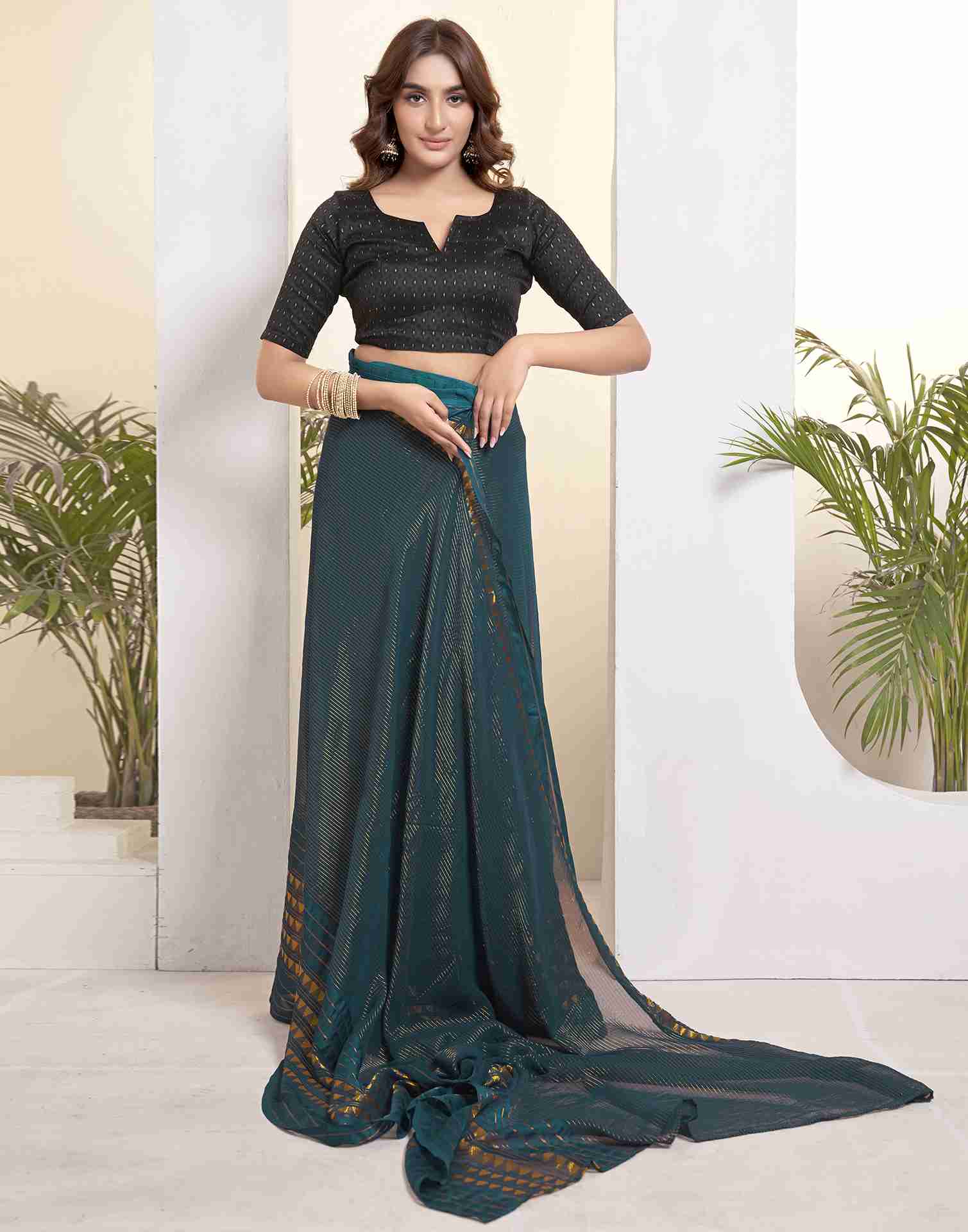 Ready To Wear Rama Blue Georgette Plain Printed Saree