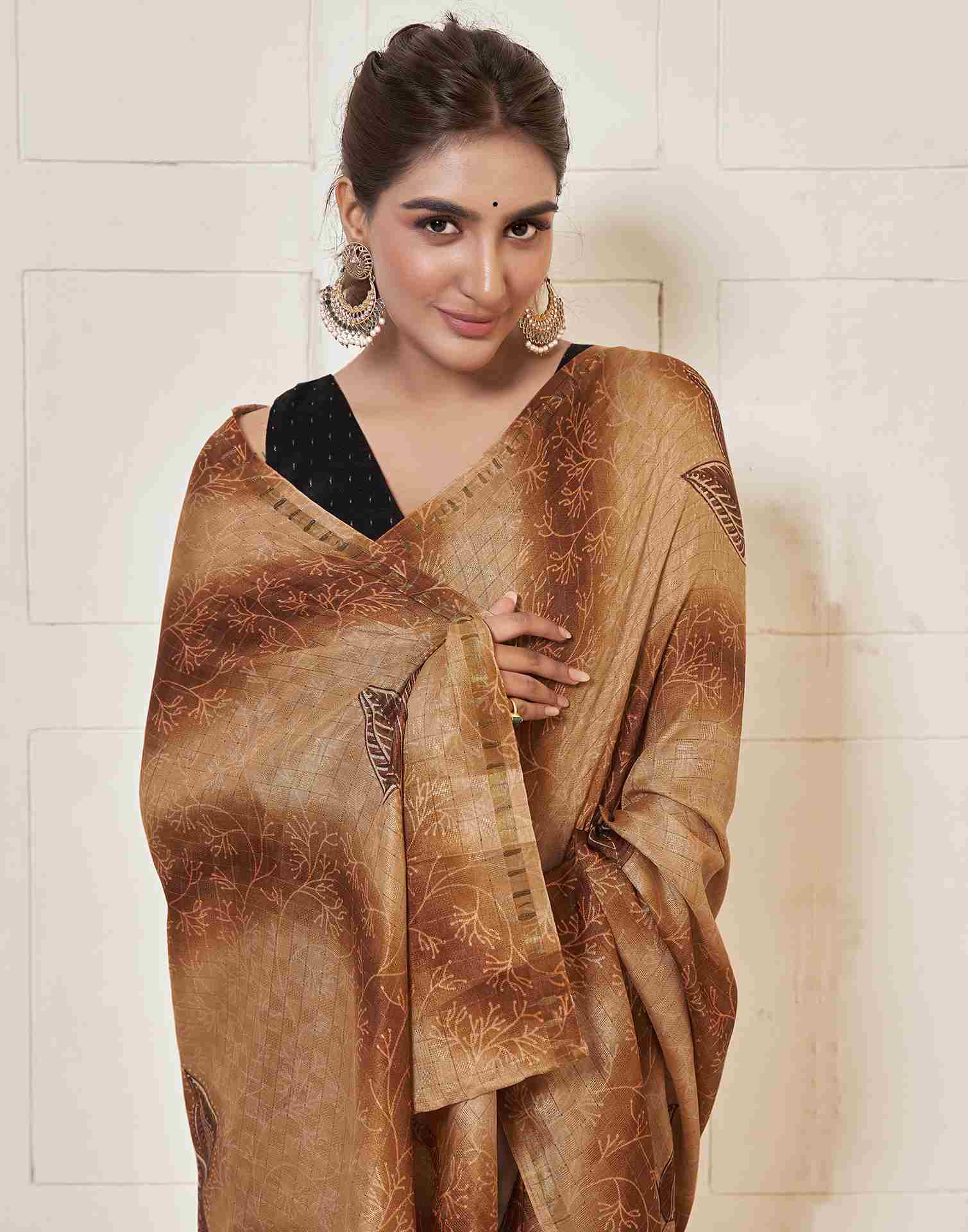 Ready To Wear Chestnut Brown Silk Printed Saree