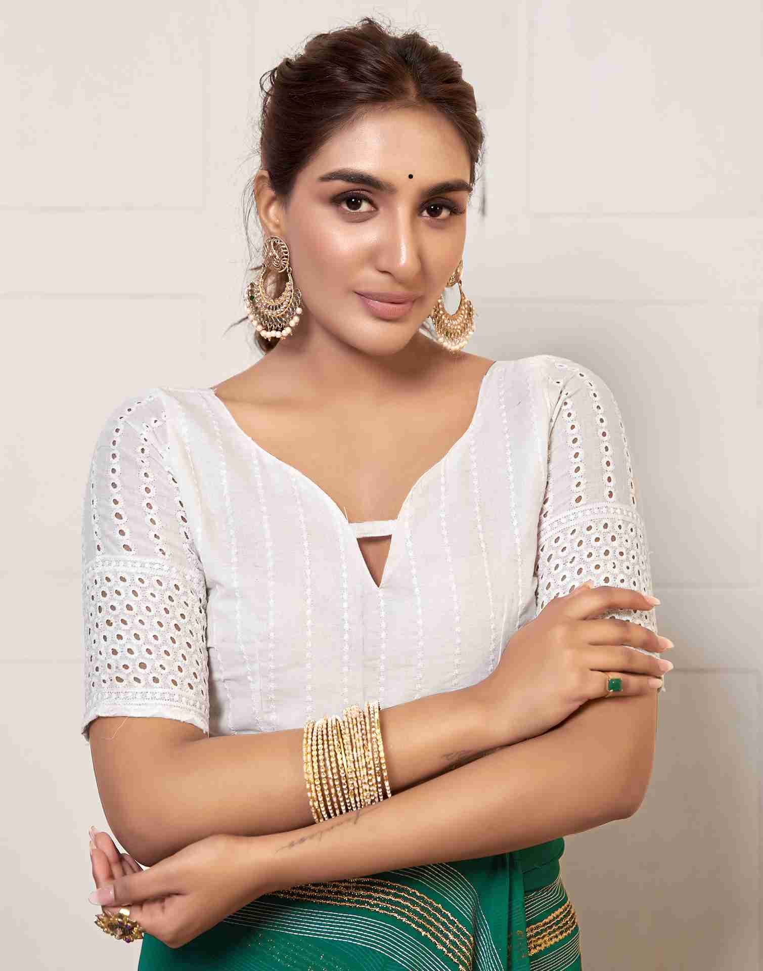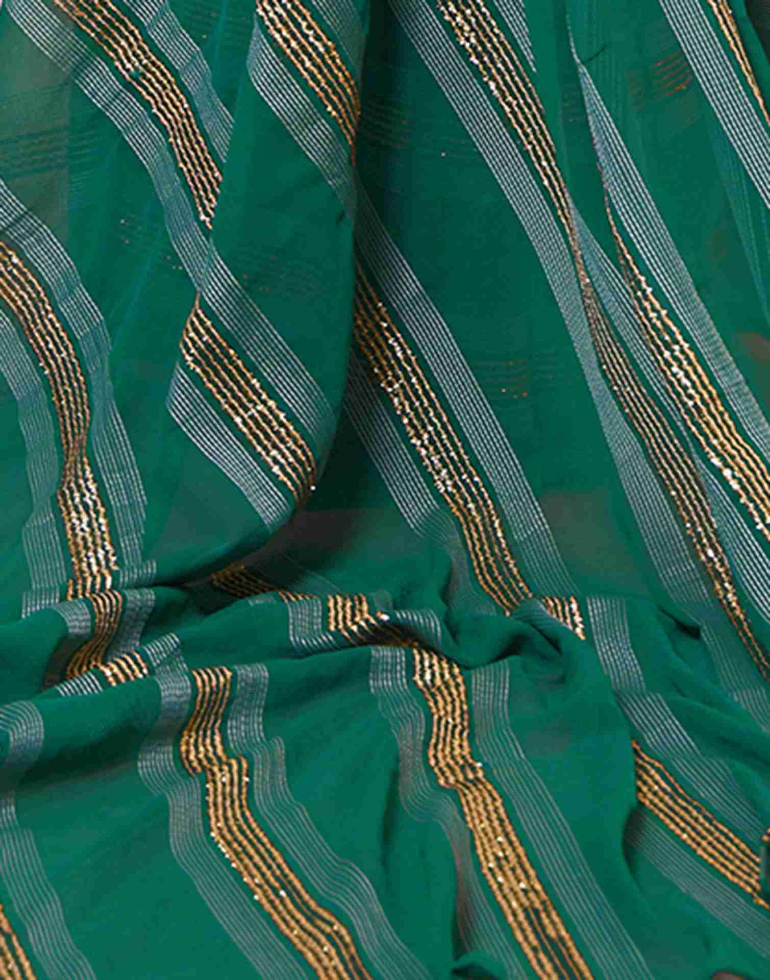 Ready To Wear Bottle Green Georgette Plain Printed Saree