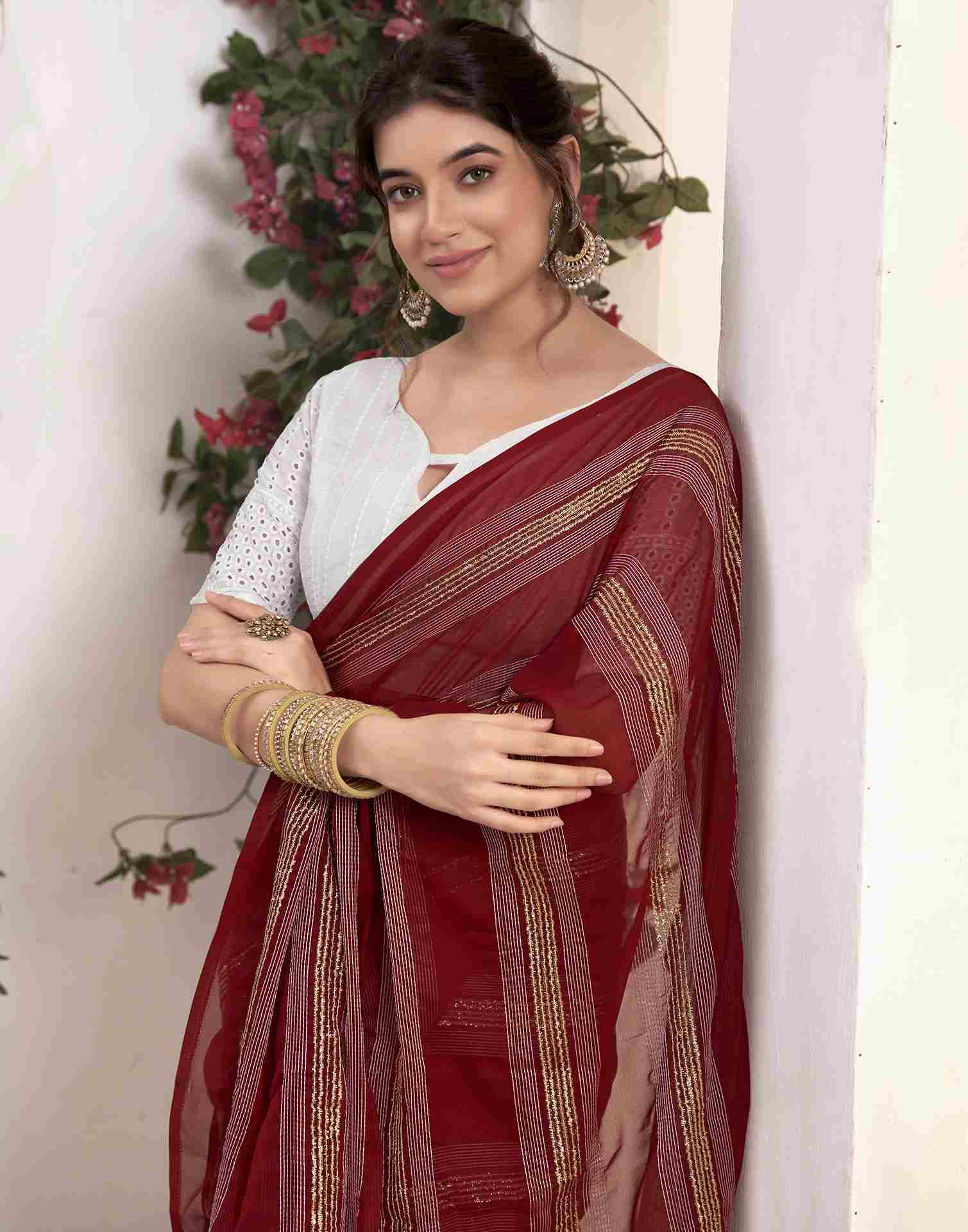 Ready To Wear Maroon Georgette Plain Printed Saree
