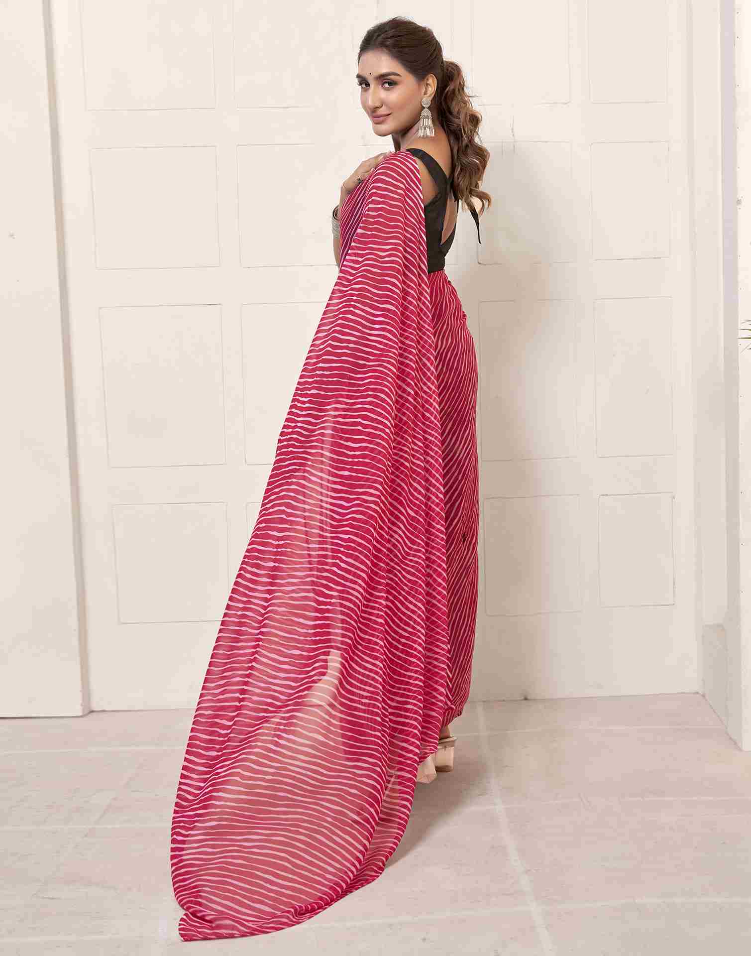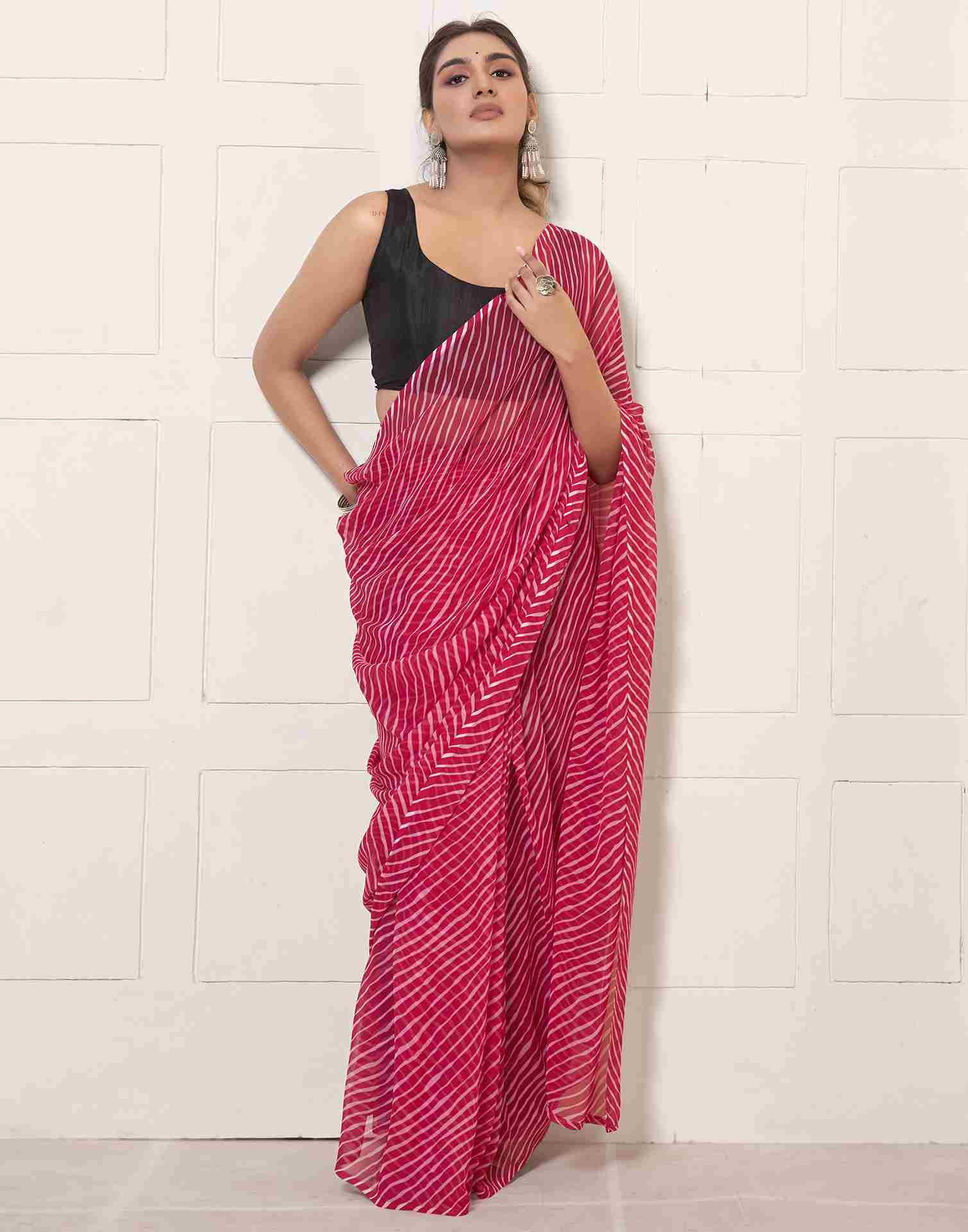 Ready To Wear Dark Pink Georgette Printed Leheriya Saree