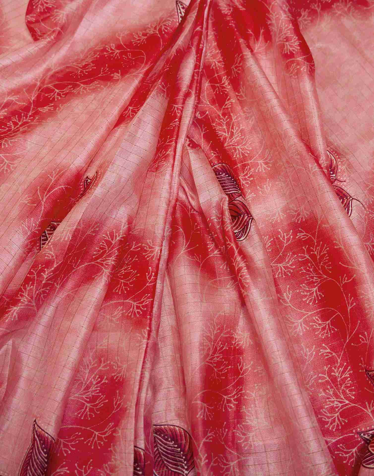 Ready To Wear Light Red Silk Printed Saree