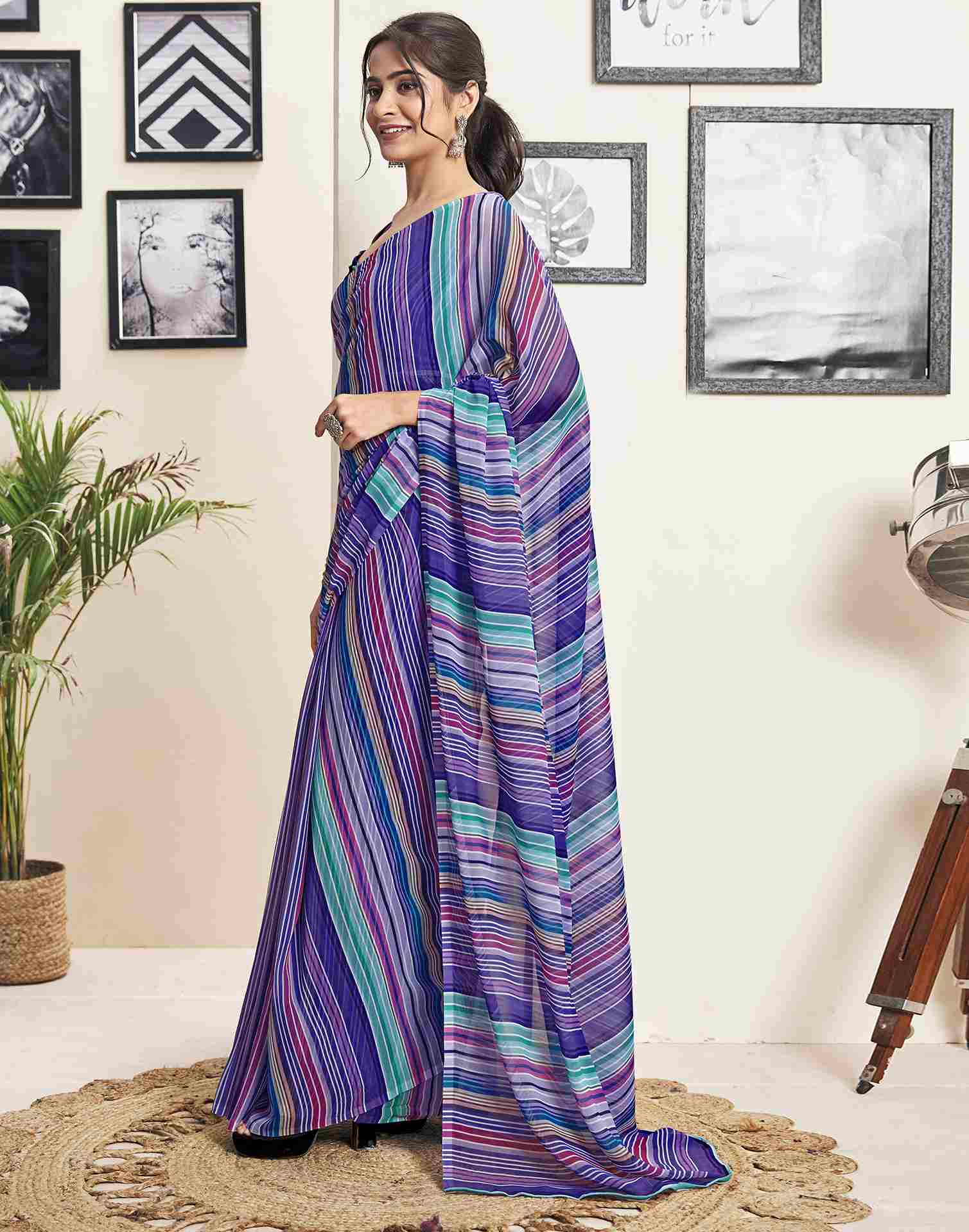Ready To Wear Violet Georgette Printed Saree