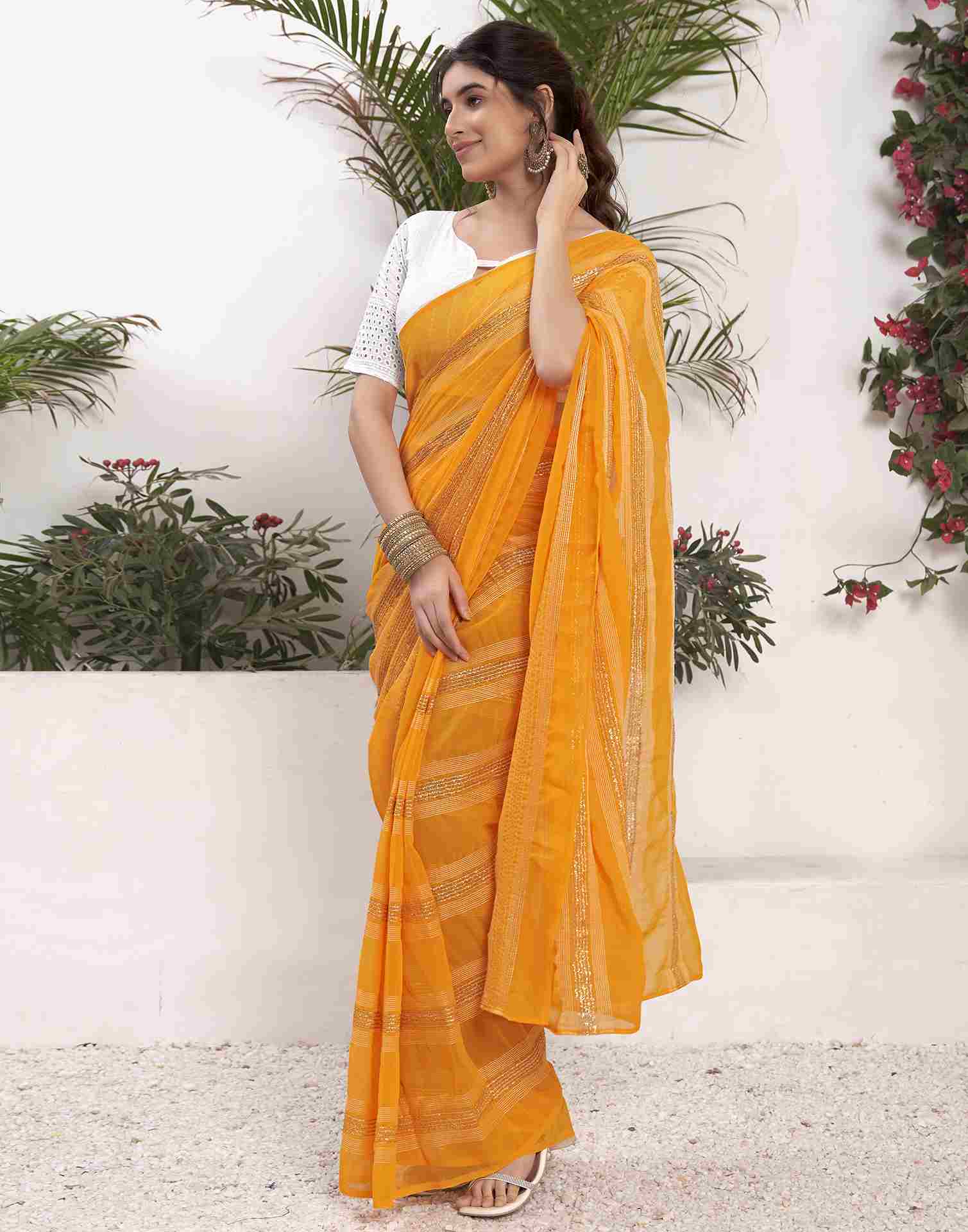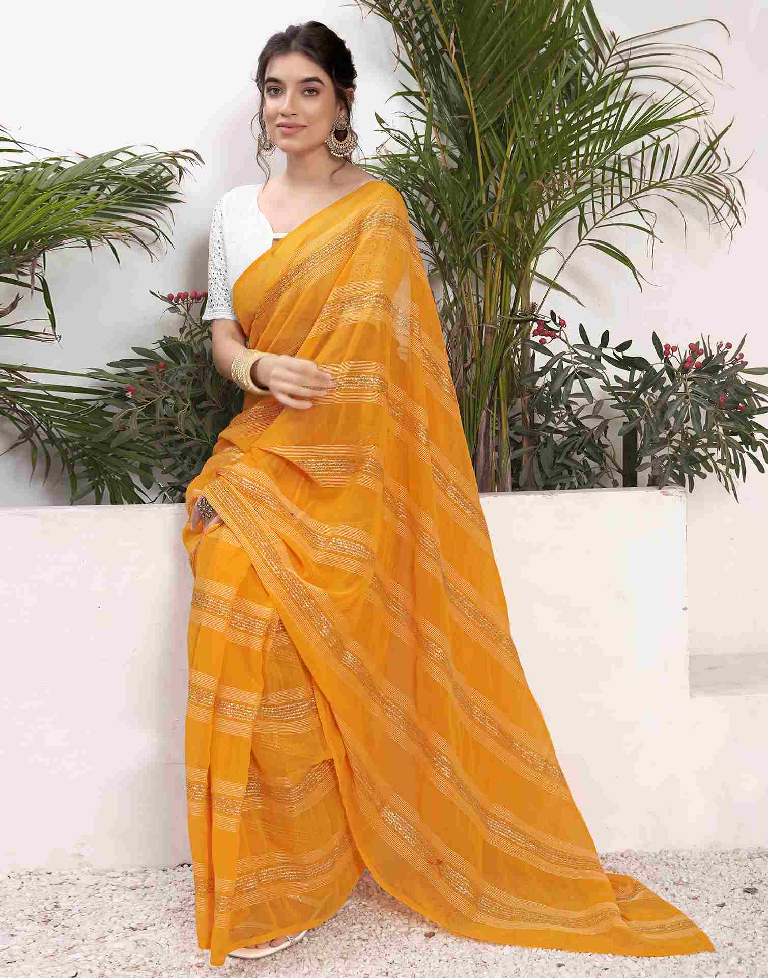 Ready To Wear Yellow Georgette Plain Printed Saree