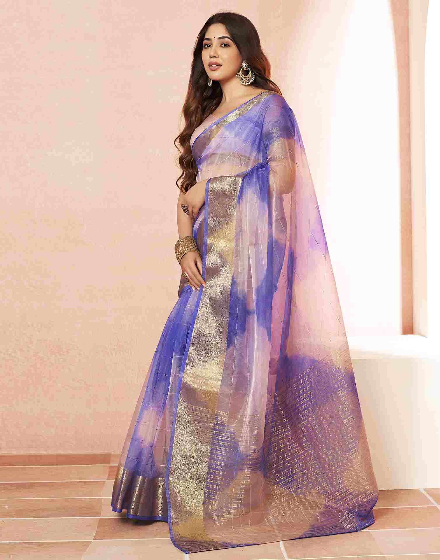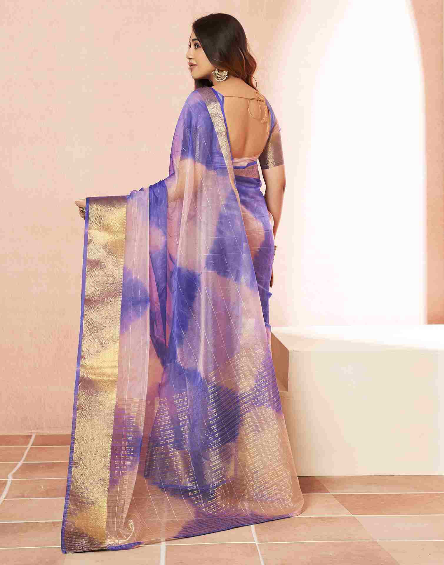 Light Pink Organza Printed Woven Saree