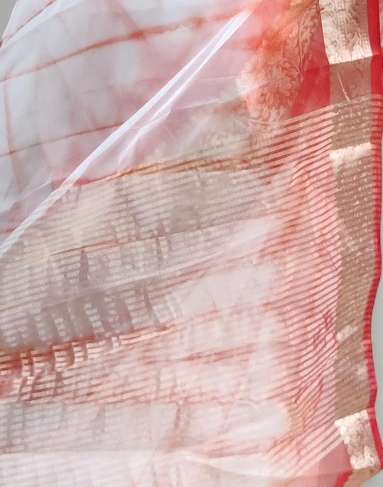 Red Organza Printed Saree
