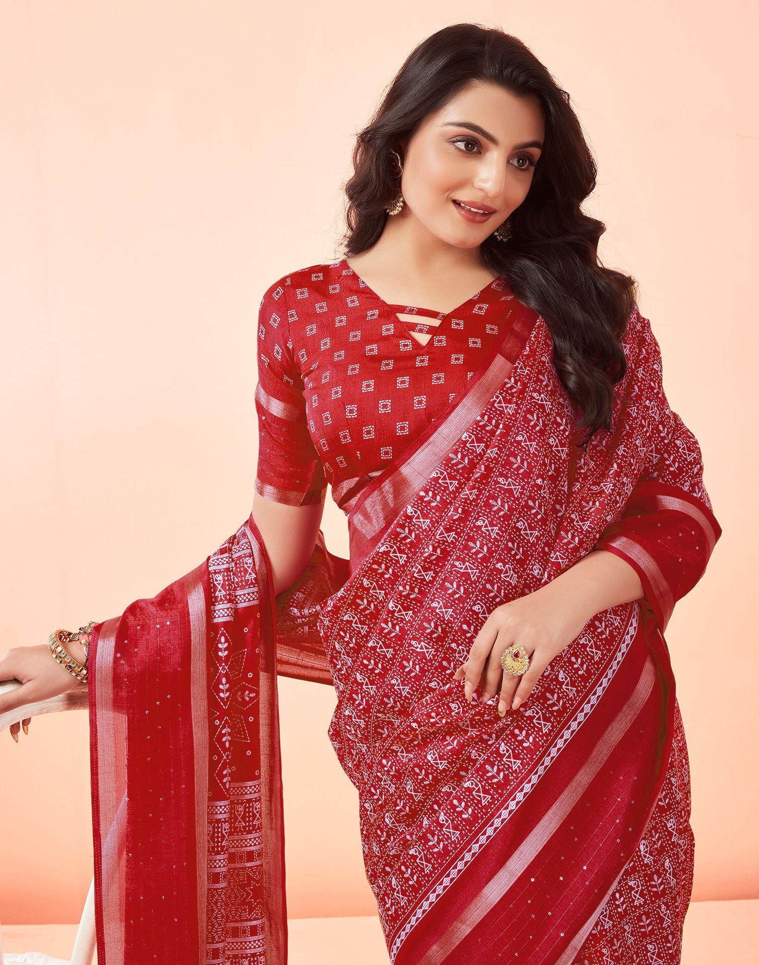 Red Printed Cotton Saree