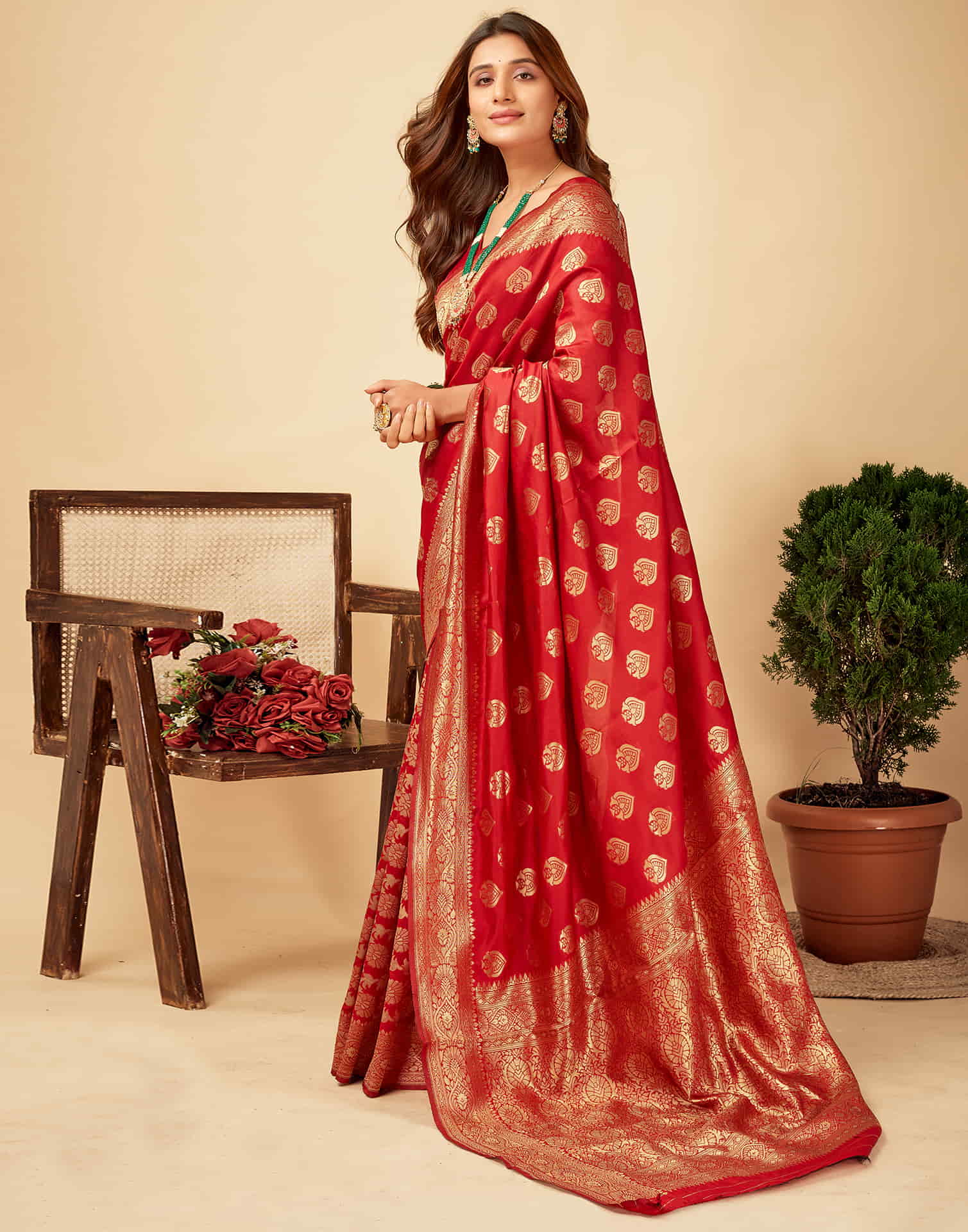 Red Woven Banarasi Silk Saree