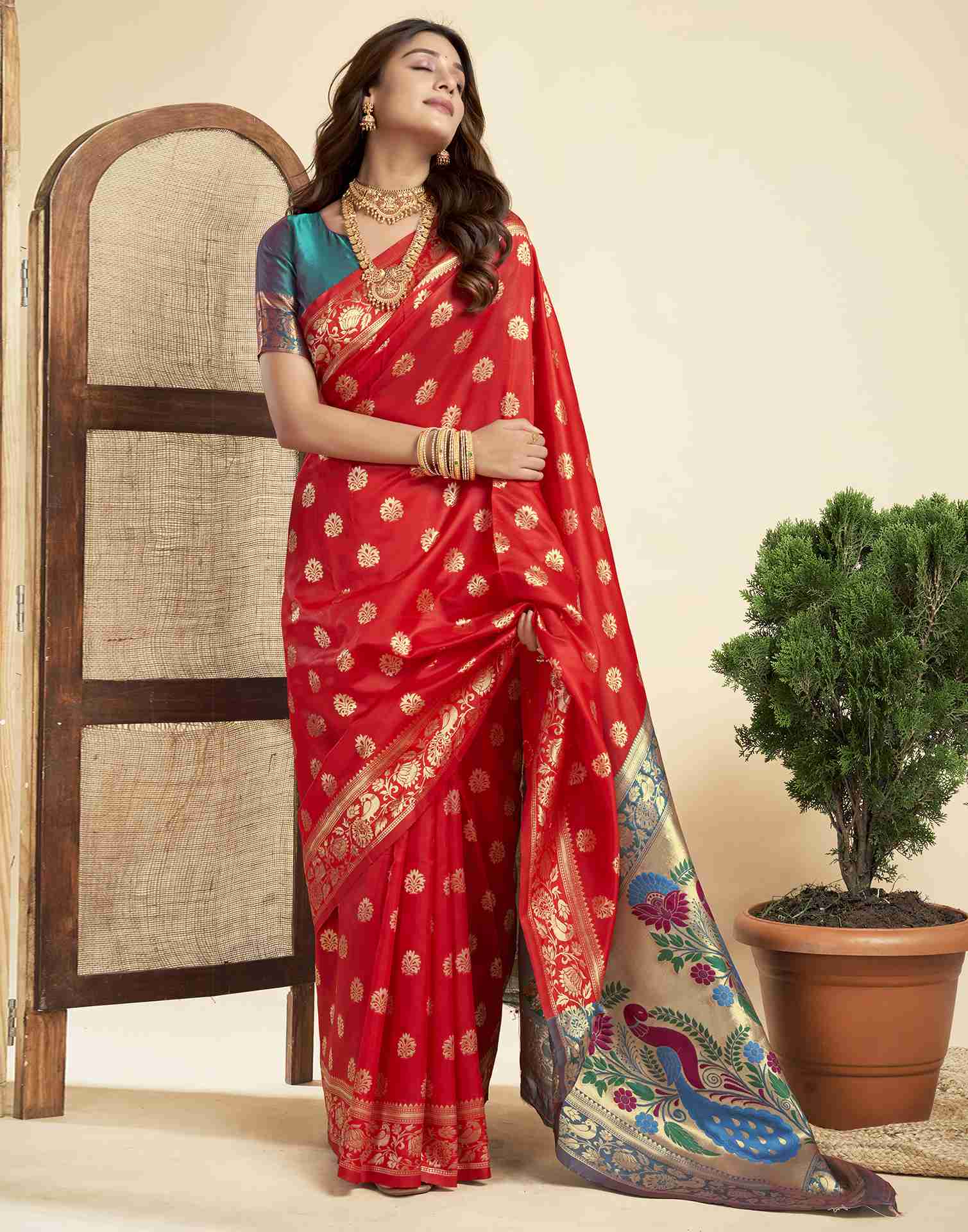 Red Silk Woven Paithani Saree