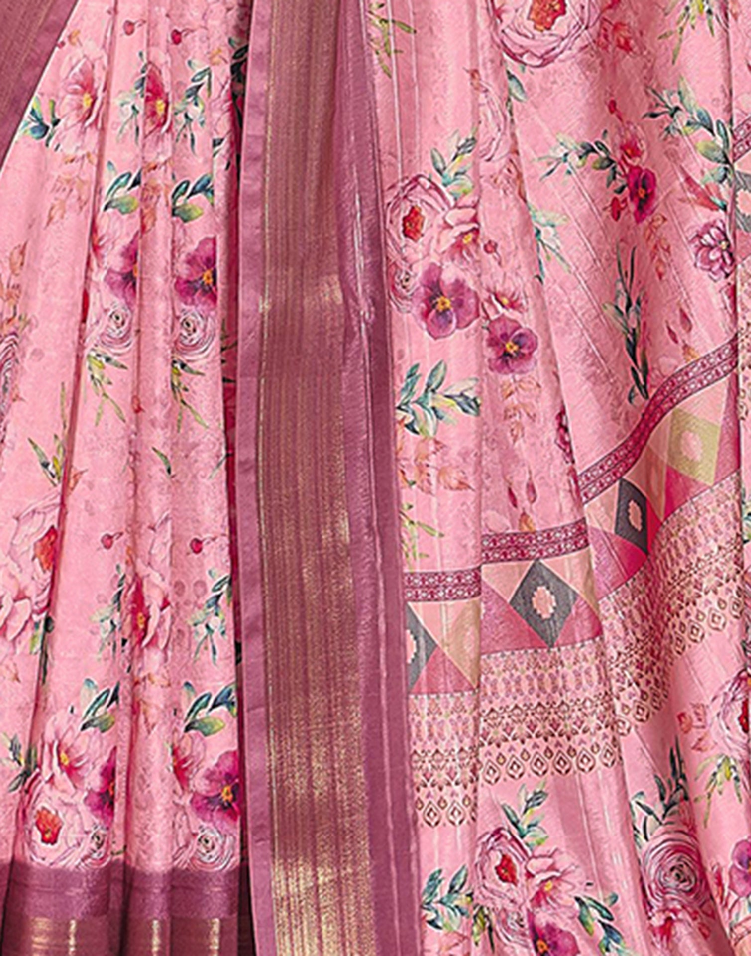 Rose Pink Silk Printed Saree
