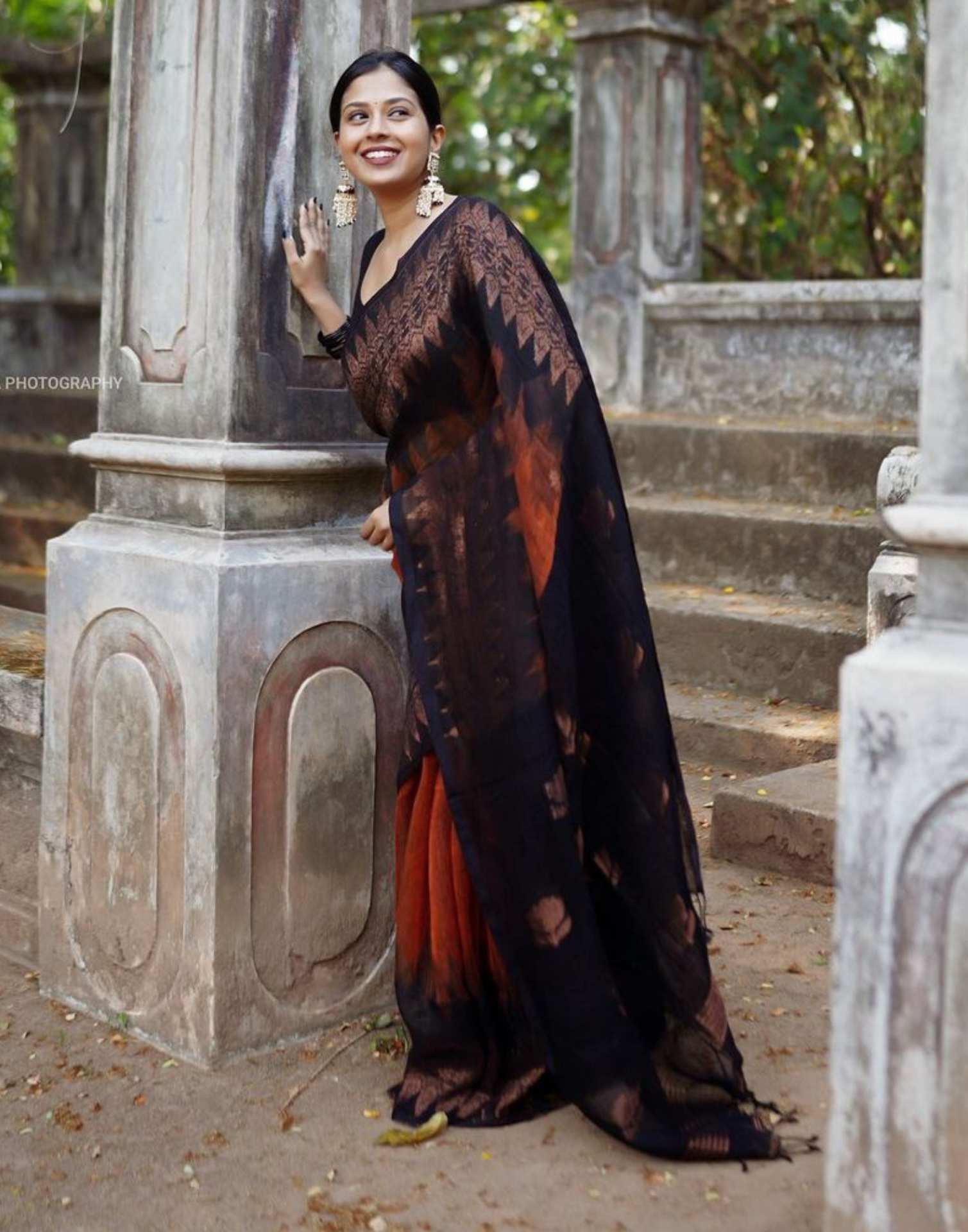 Rust Orange Cotton Weaving Saree