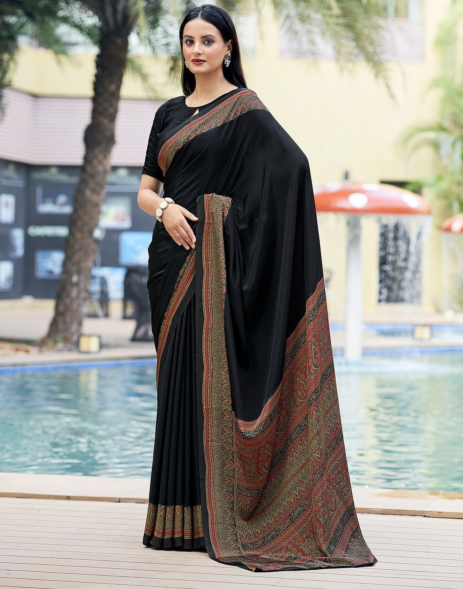 Rust Printed Silk Saree