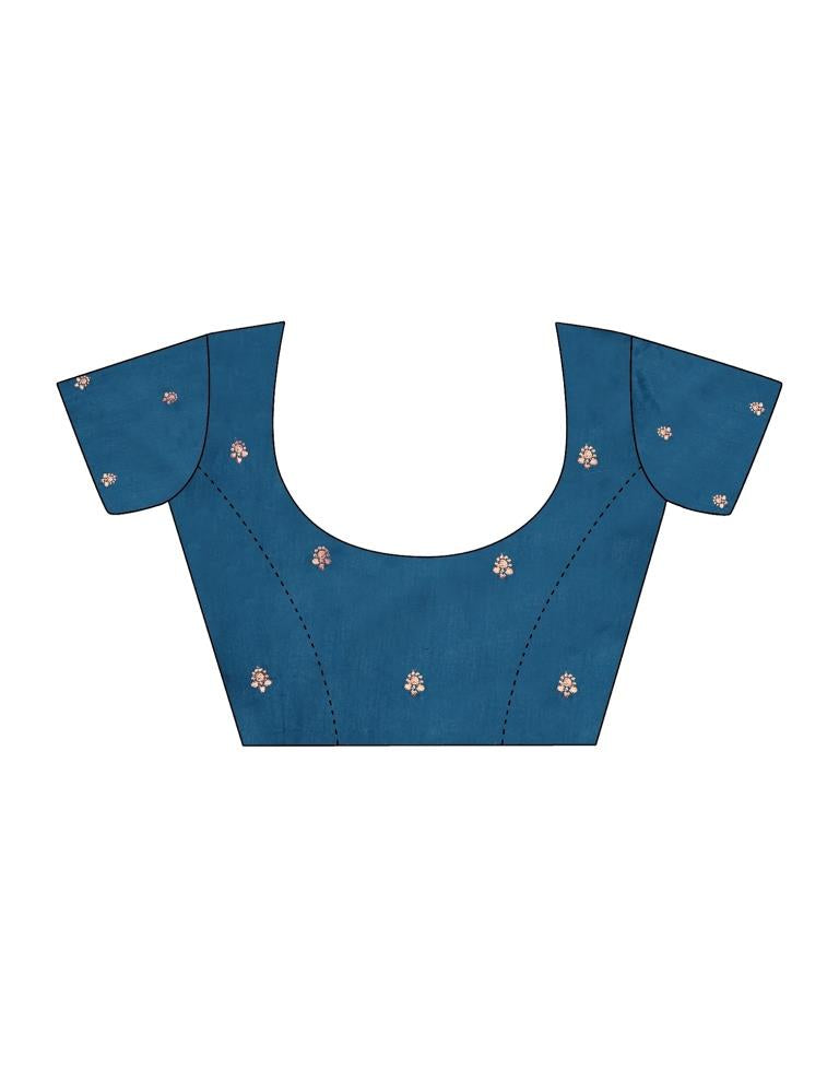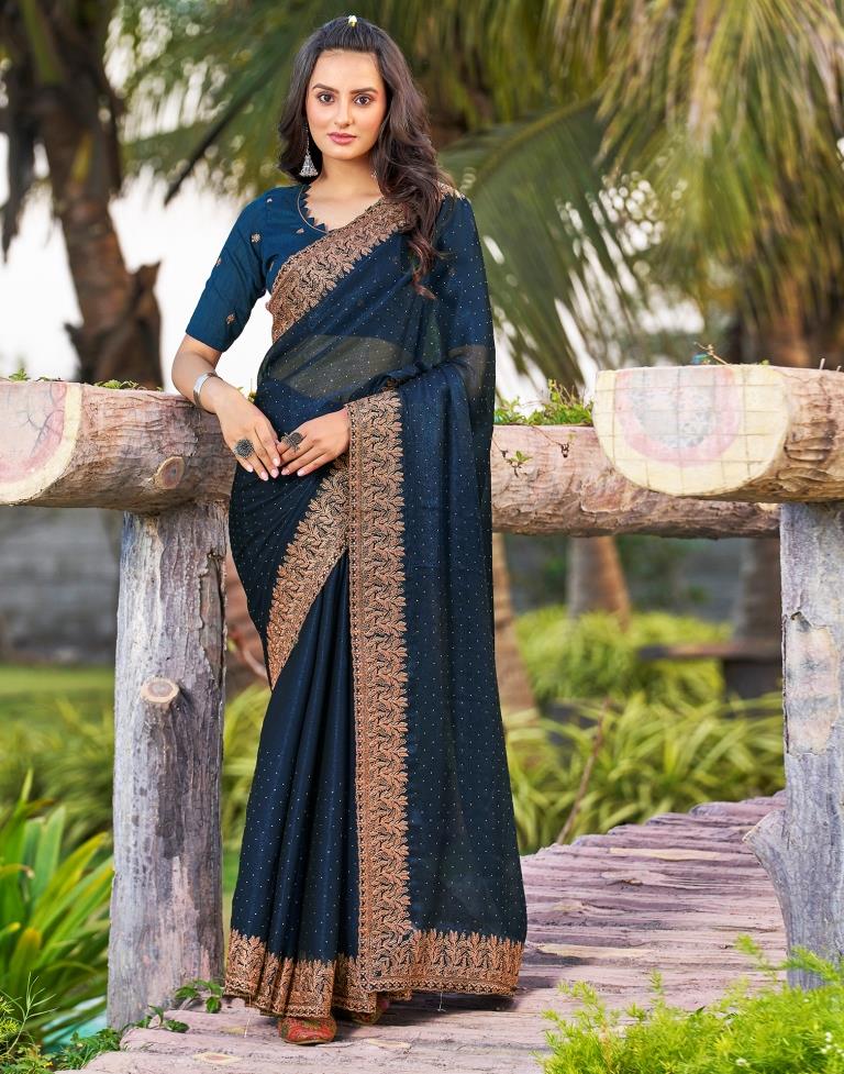Sea Blue Chiffon Embroidery Saree