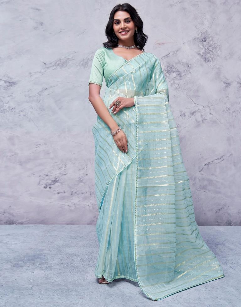 Sky Blue Organza Plain Saree