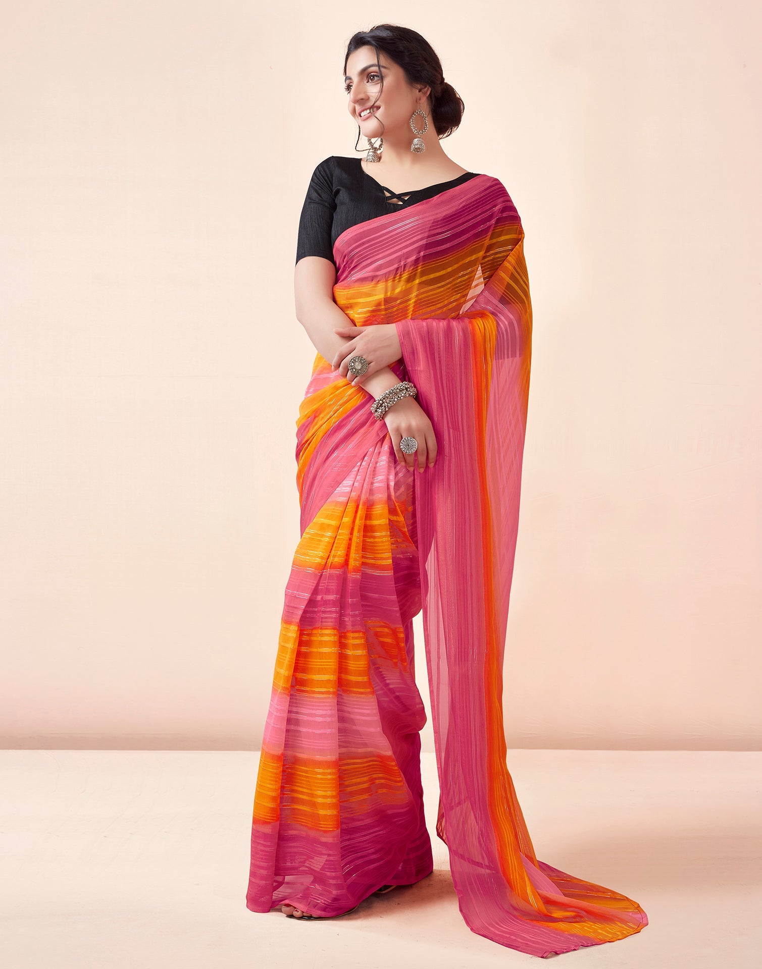 Ready to Wear Turmeric & Red Georgette Printed Saree